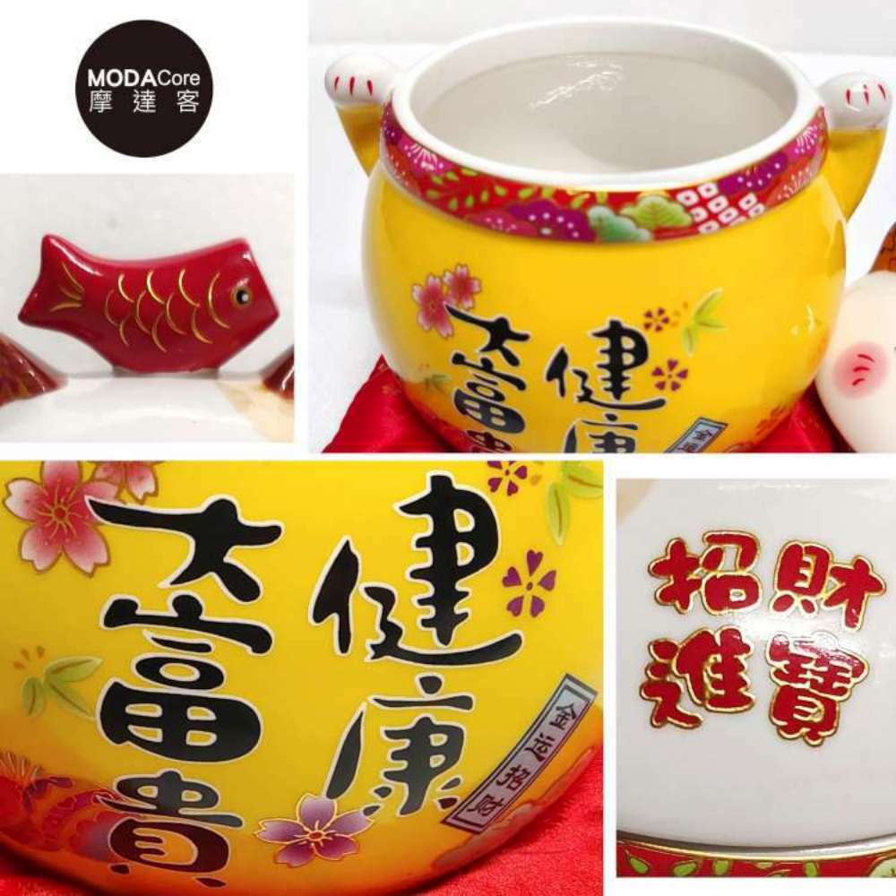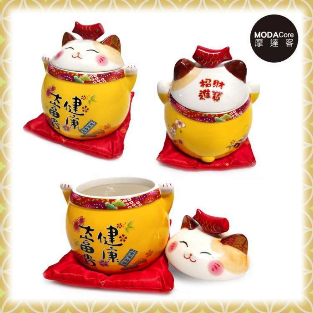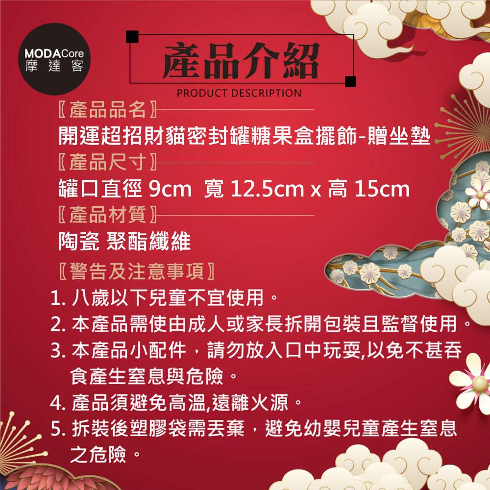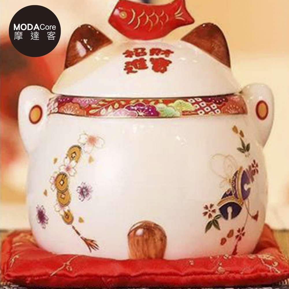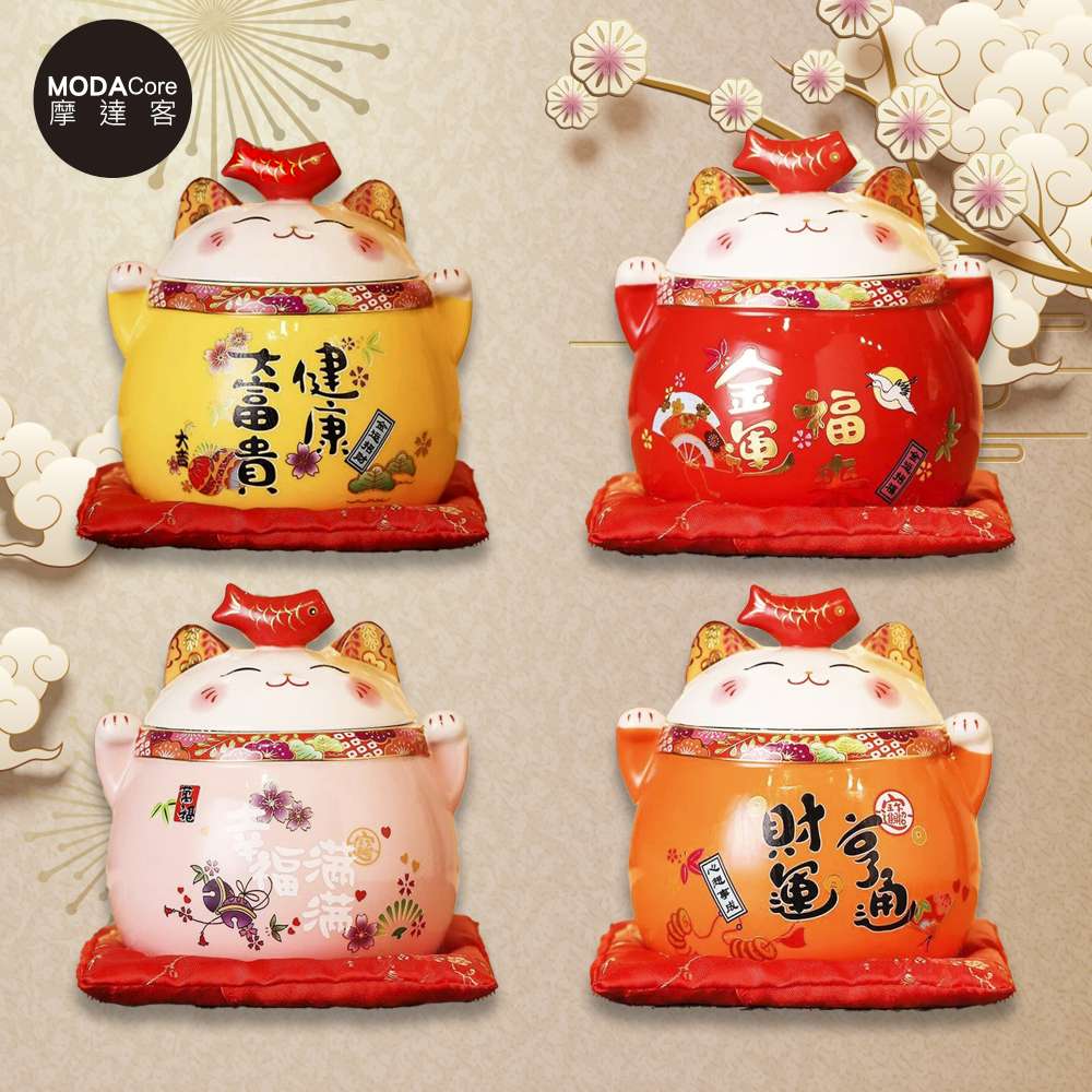摩達客◉春節開運◉開運超招財貓密封罐糖果盒擺飾_四色可選(贈坐墊)/聚寶盆收納好物