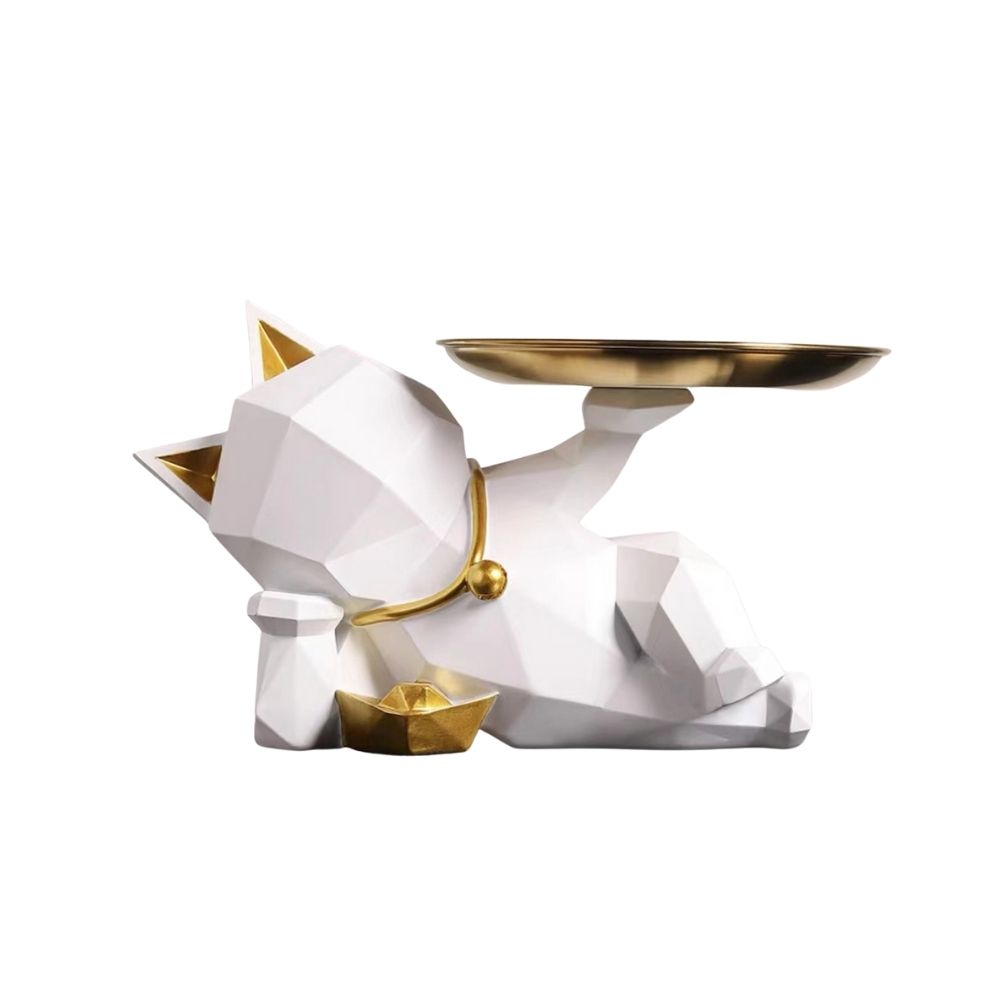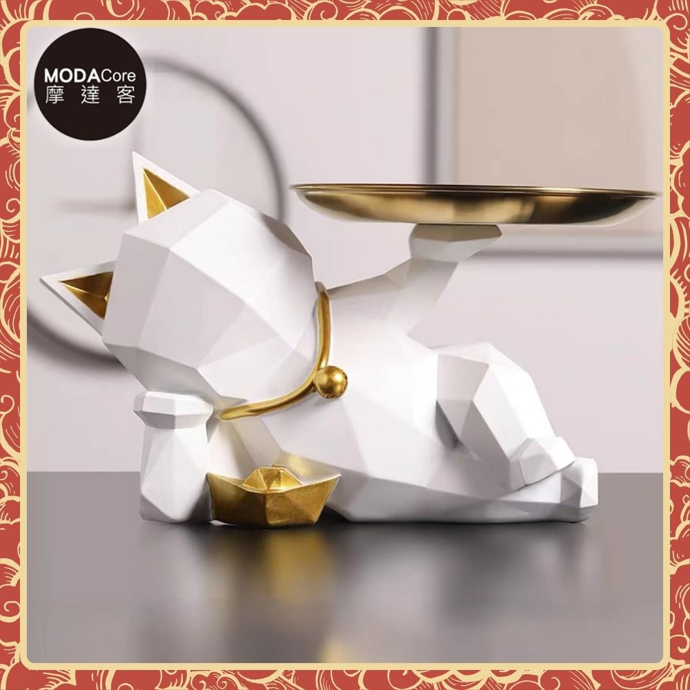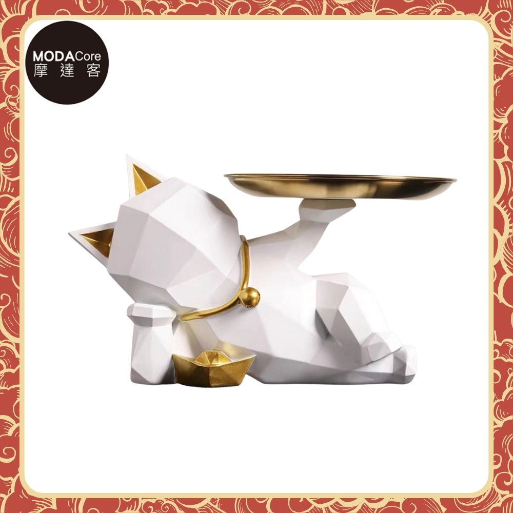 摩達客◉開運招財◉現代藝術白色設計師斜躺捧金盤迎賓招財貓-開運喵星人擺飾 時尚藝術 事業開店禮品
