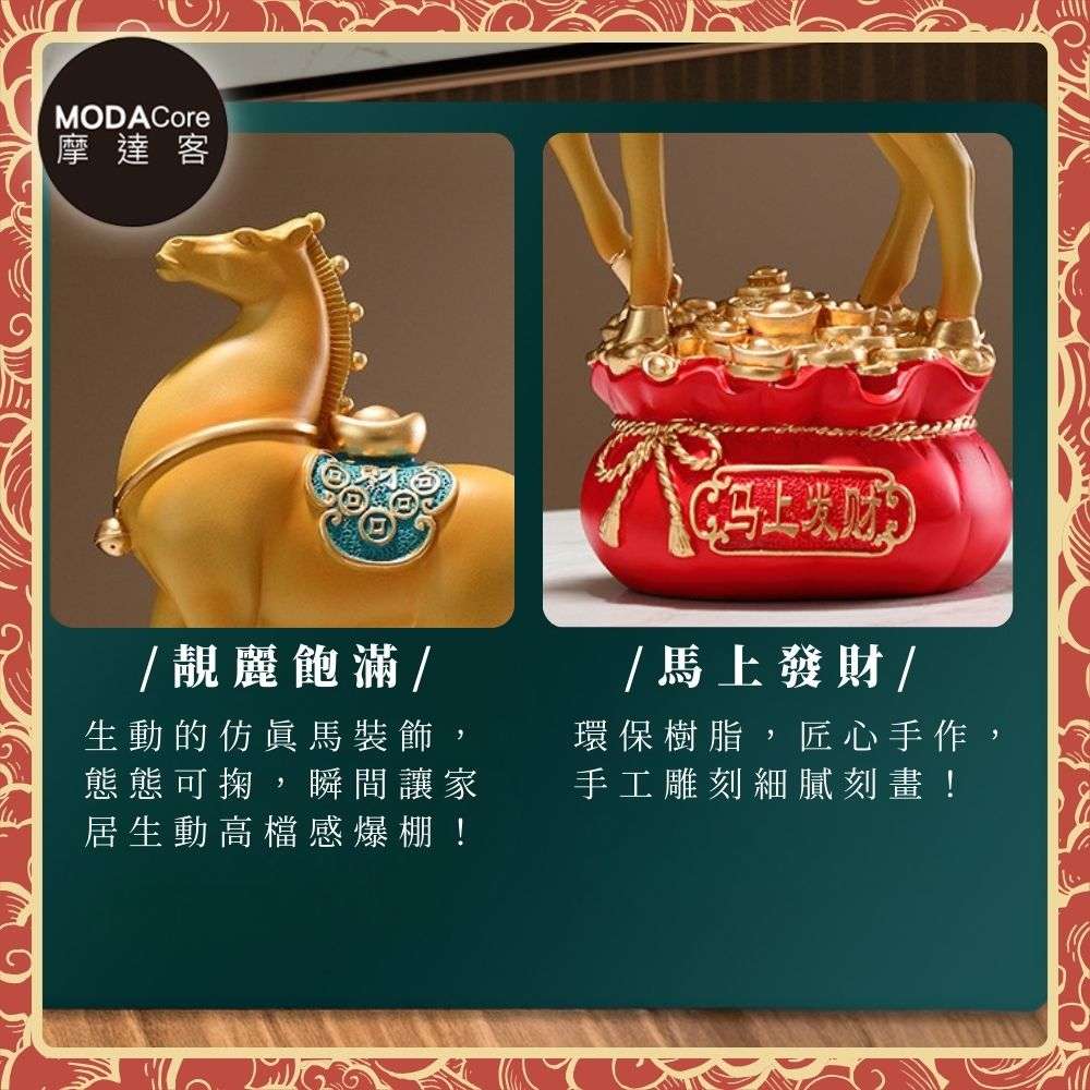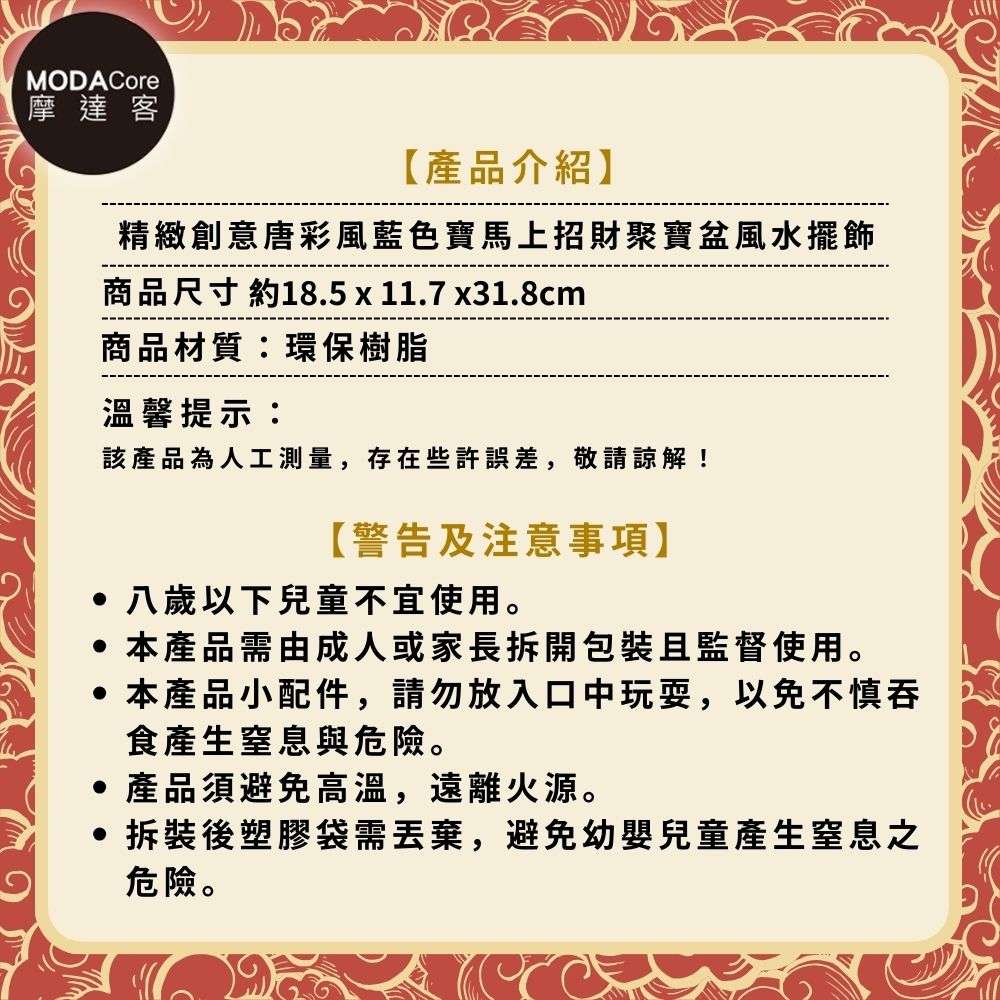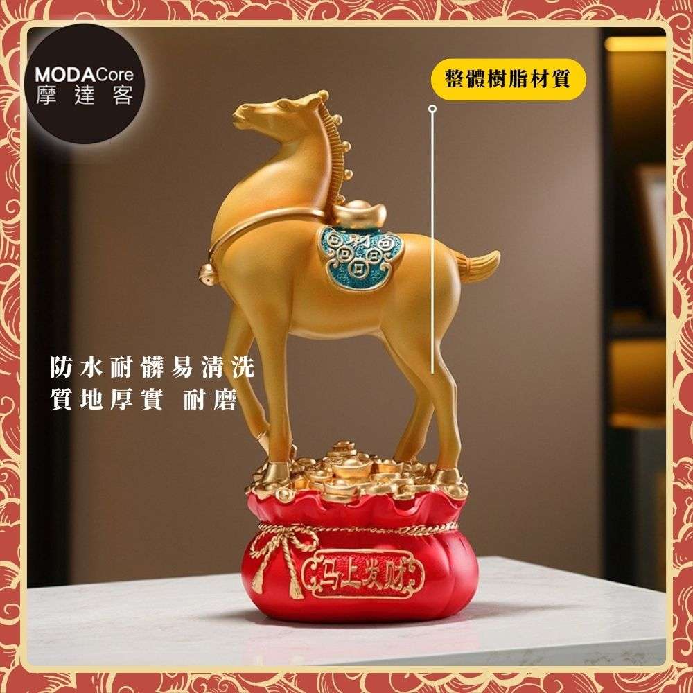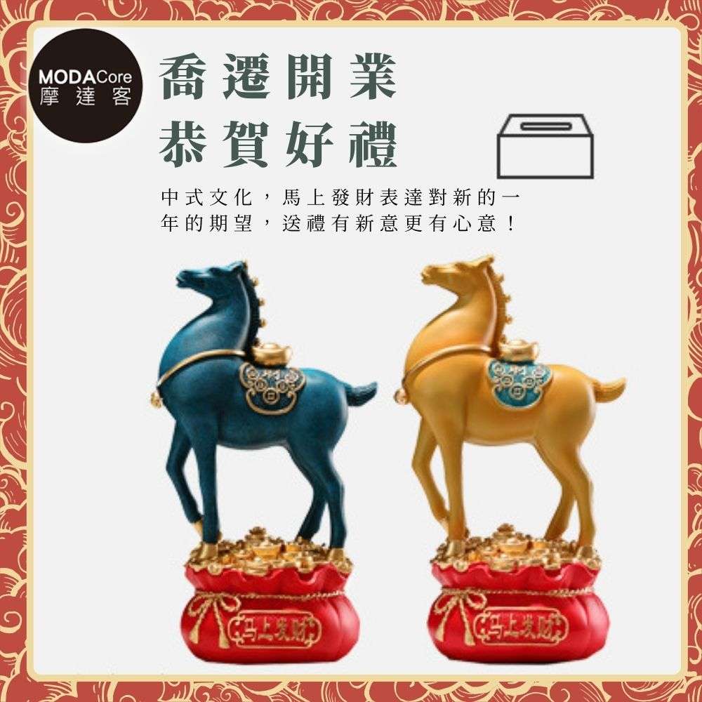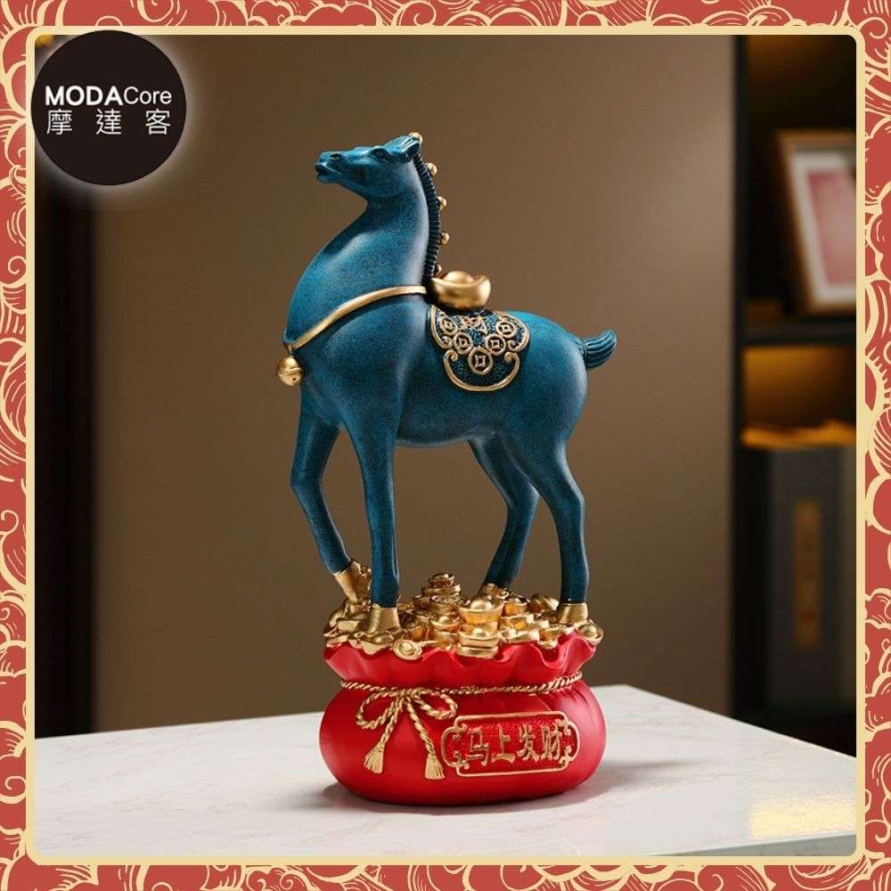 摩達客◉開運招財◉精緻創意唐彩風藍色寶馬上招財聚寶盆風水擺飾 辦公室事業 客廳玄關 春節禮品工藝