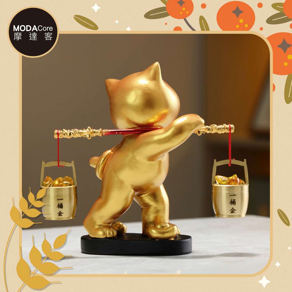 摩達客◉開運招財◉扁擔貓招財進寶貓擺飾組 金色-小款_日進斗金元寶 客廳玄關臥室好風水好運勢