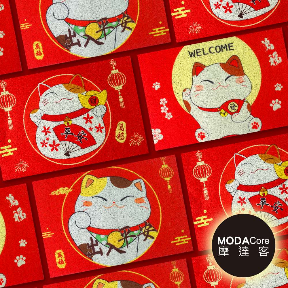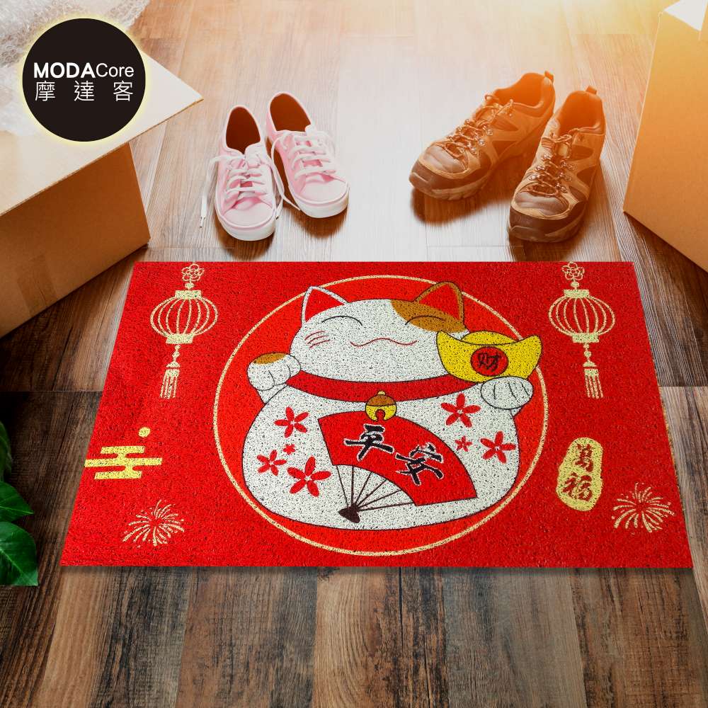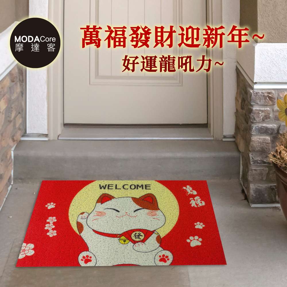 摩達客◉春節開運◉喜氣招財貓刮泥絲圈腳踏墊門墊地墊(不挑款隨機出貨)