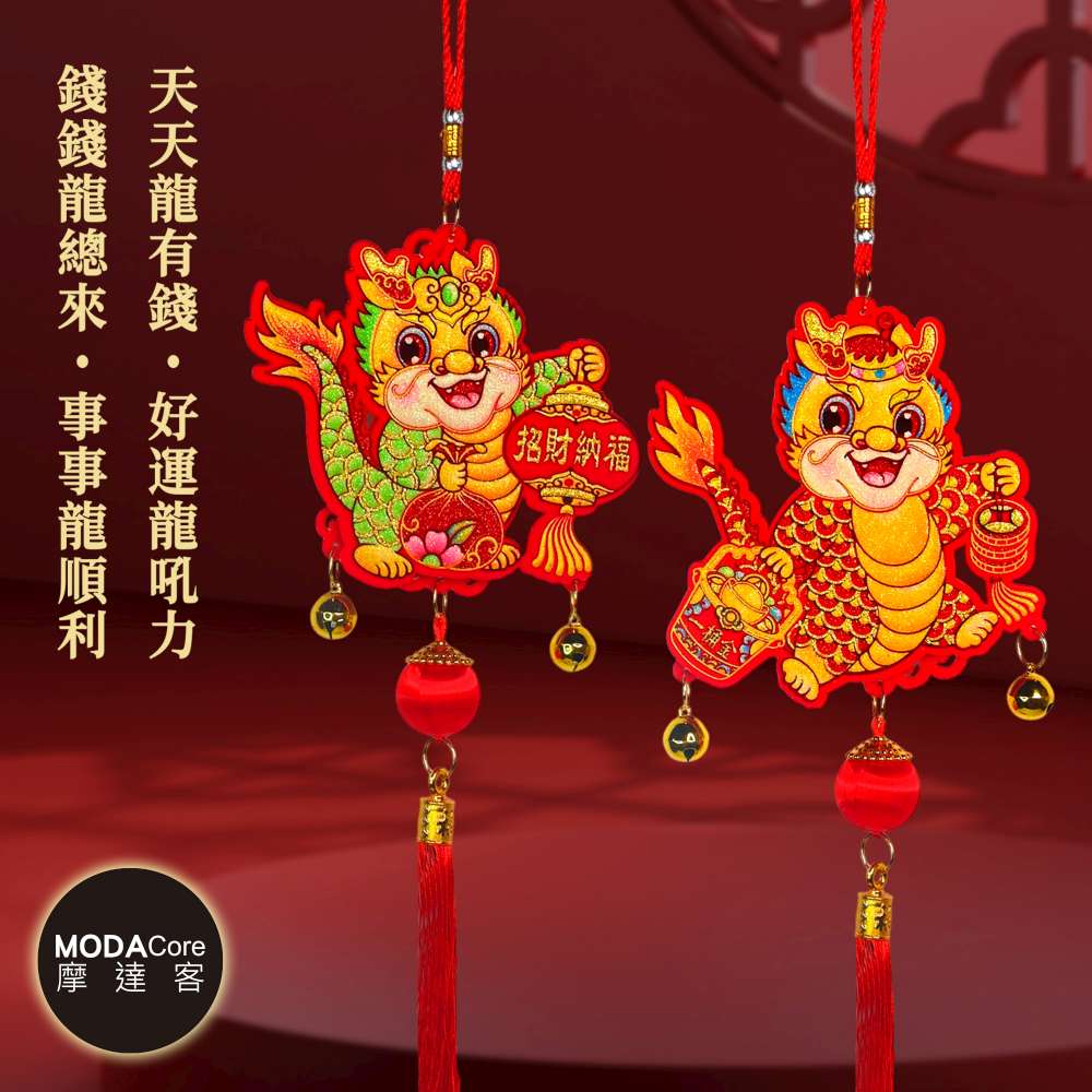 摩達客◉春節開運招財◉招財納福一桶金龍年大吉流蘇鈴鐺掛飾吊飾(2入一對)