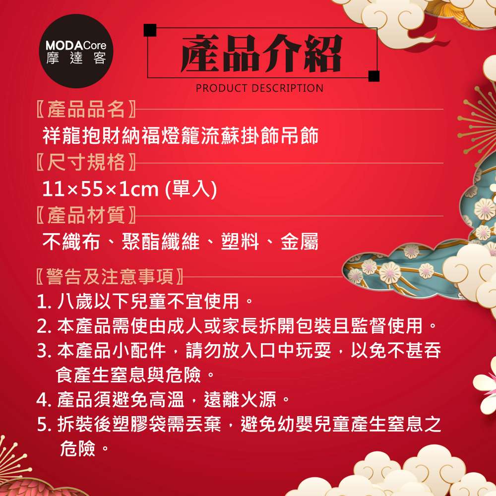 摩達客◉春節開運招財◉祥龍抱財納福燈籠流蘇掛飾吊飾