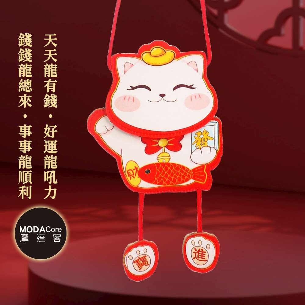摩達客◉春節開運招財◉招財貓多用途掛式紅包袋手機袋