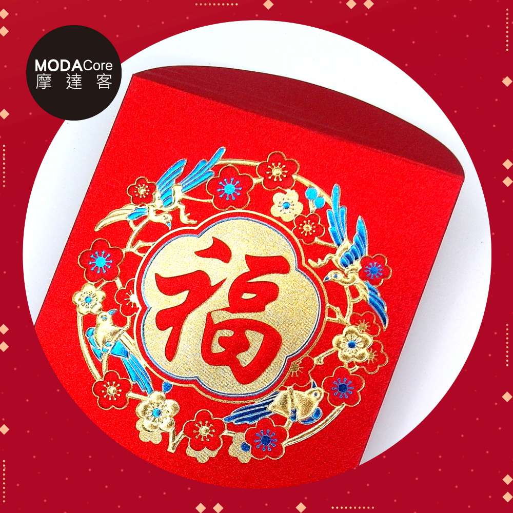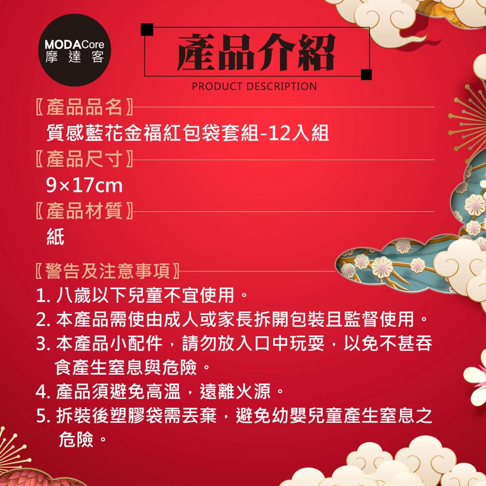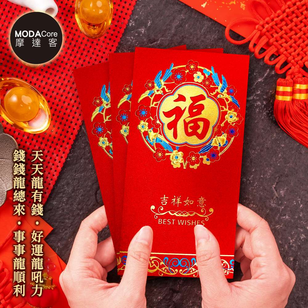 摩達客◉春節開運招財◉質感藍花金福紅包袋套組(12入一組)