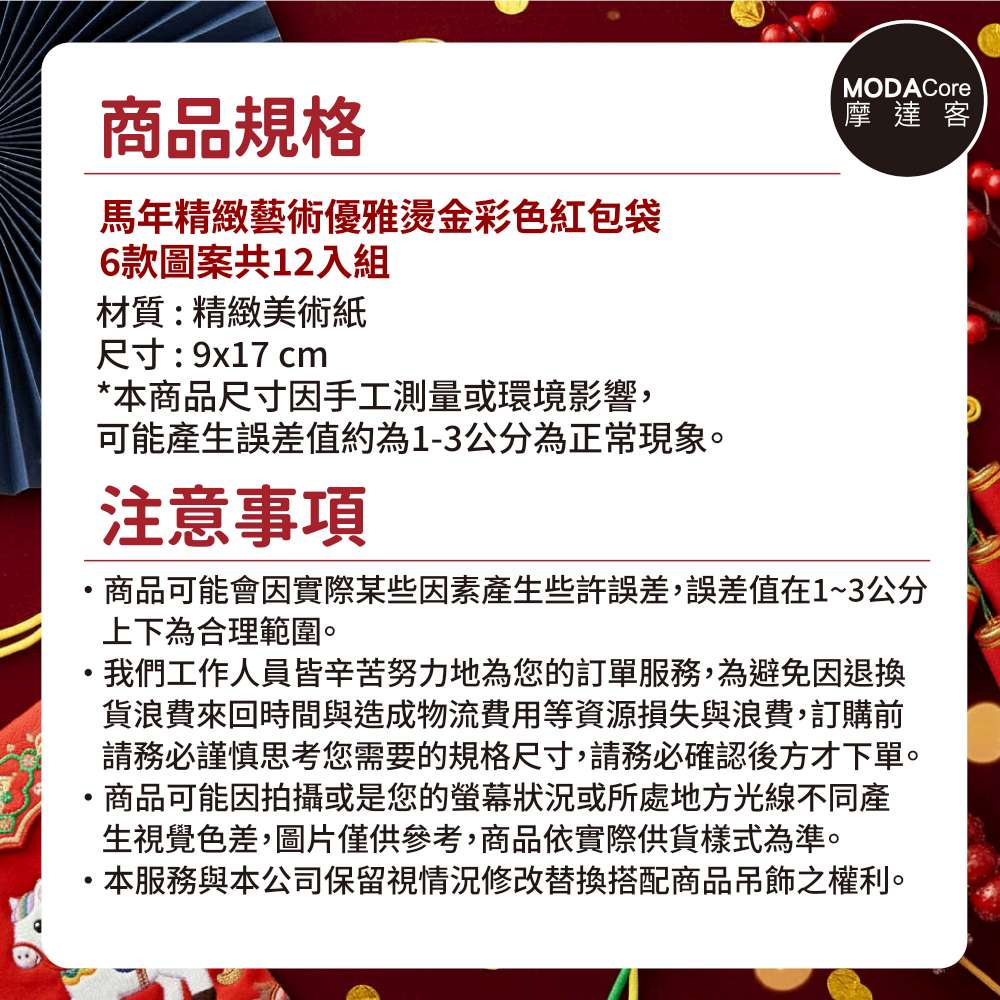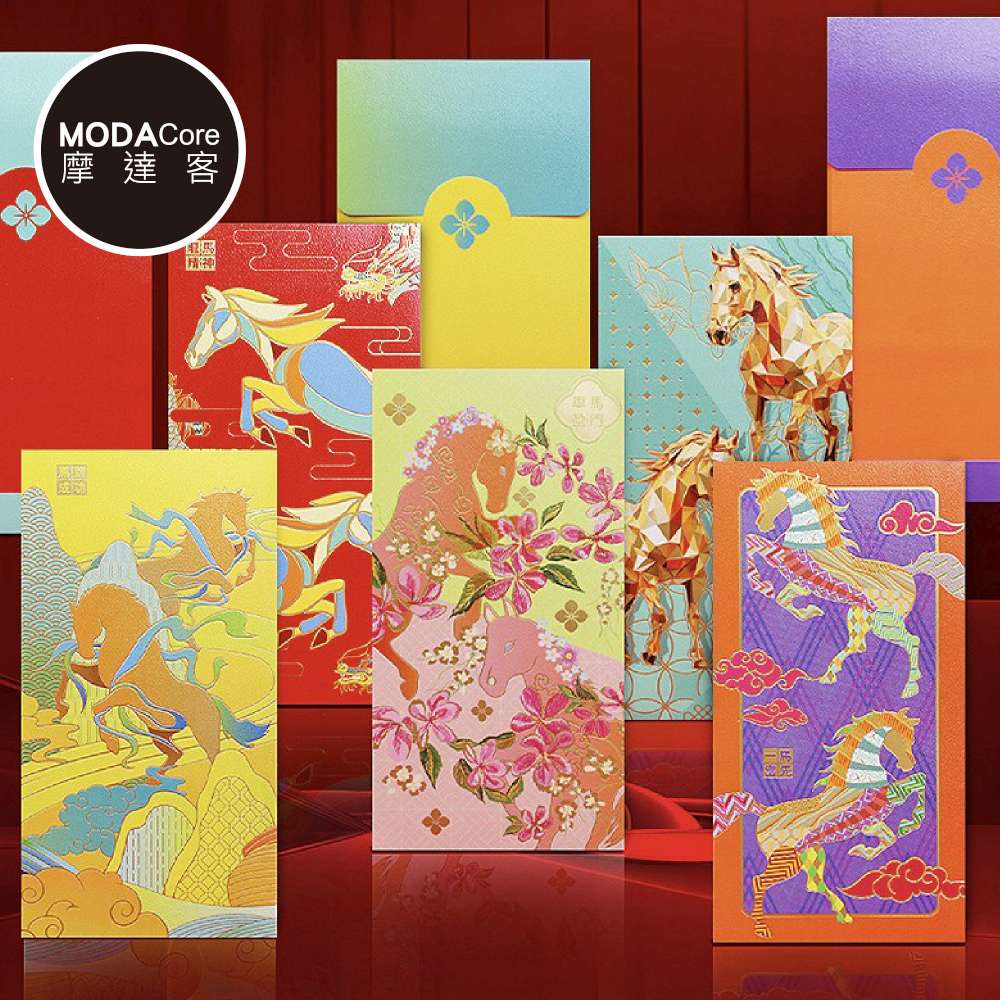 摩達客◉春節開運招財◉馬年精緻藝術優雅燙金彩色紅包袋_6款圖案共12入組