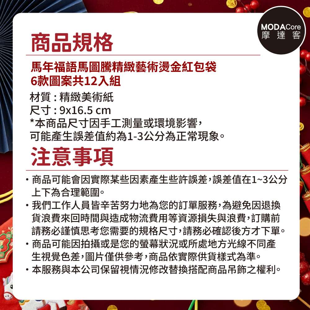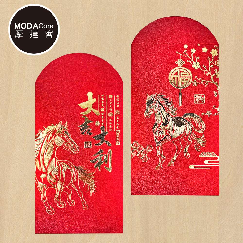 摩達客◉春節開運招財◉馬年福語馬圖騰精緻藝術燙金紅包袋_6款圖案共12入組