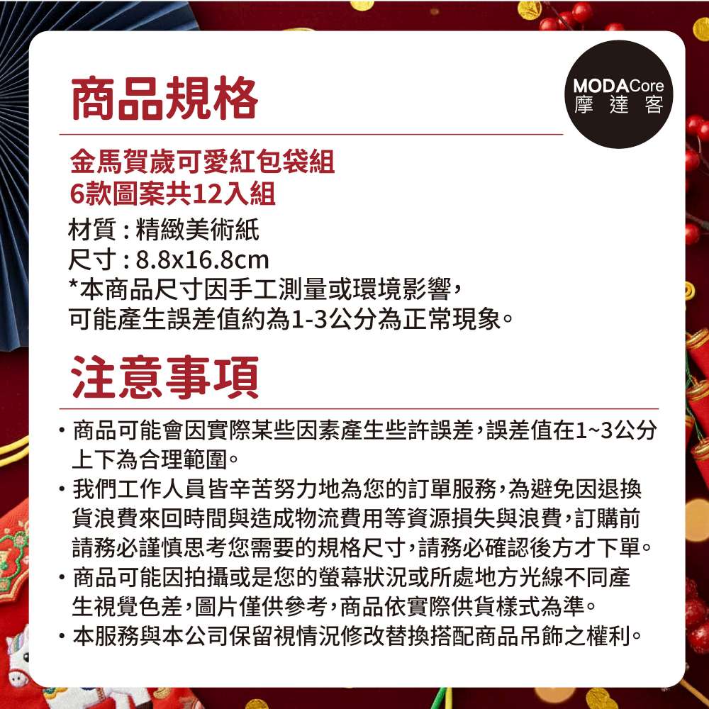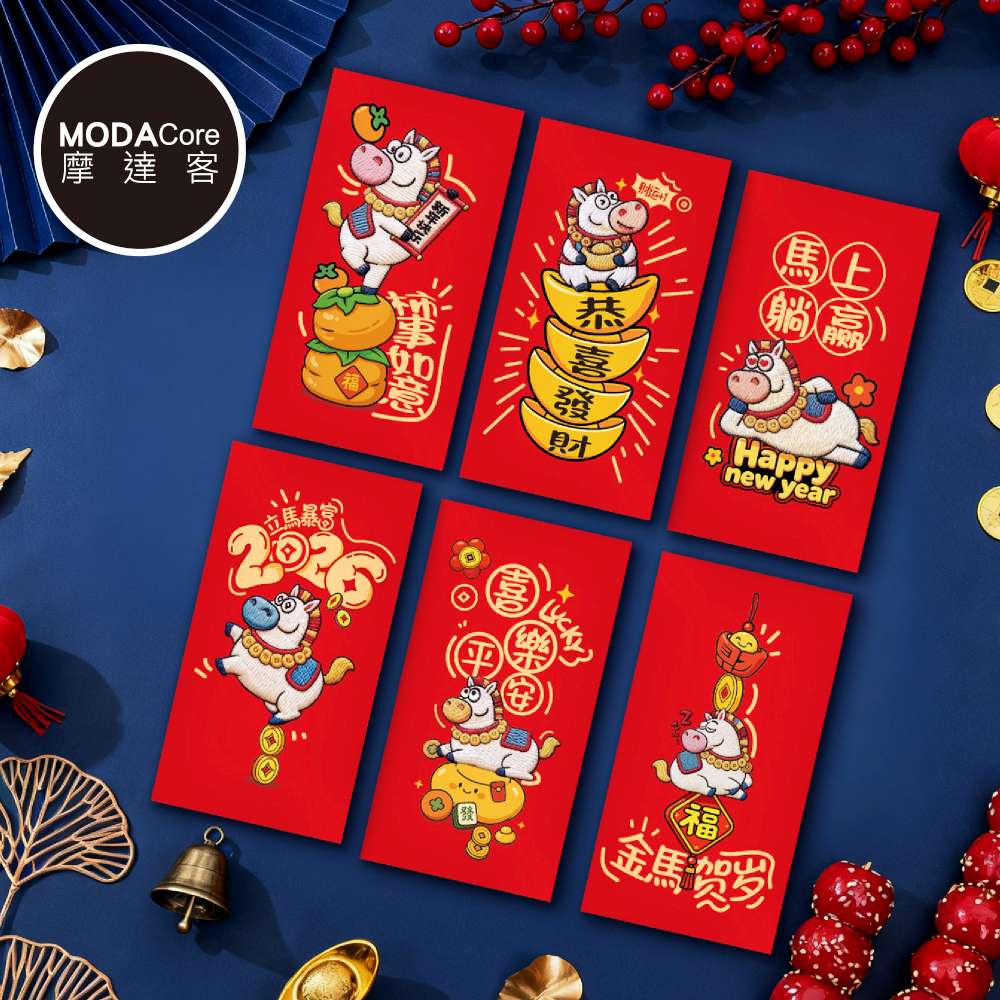 摩達客◉春節開運招財◉金馬賀歲可愛紅包袋組_6款圖案共12入組