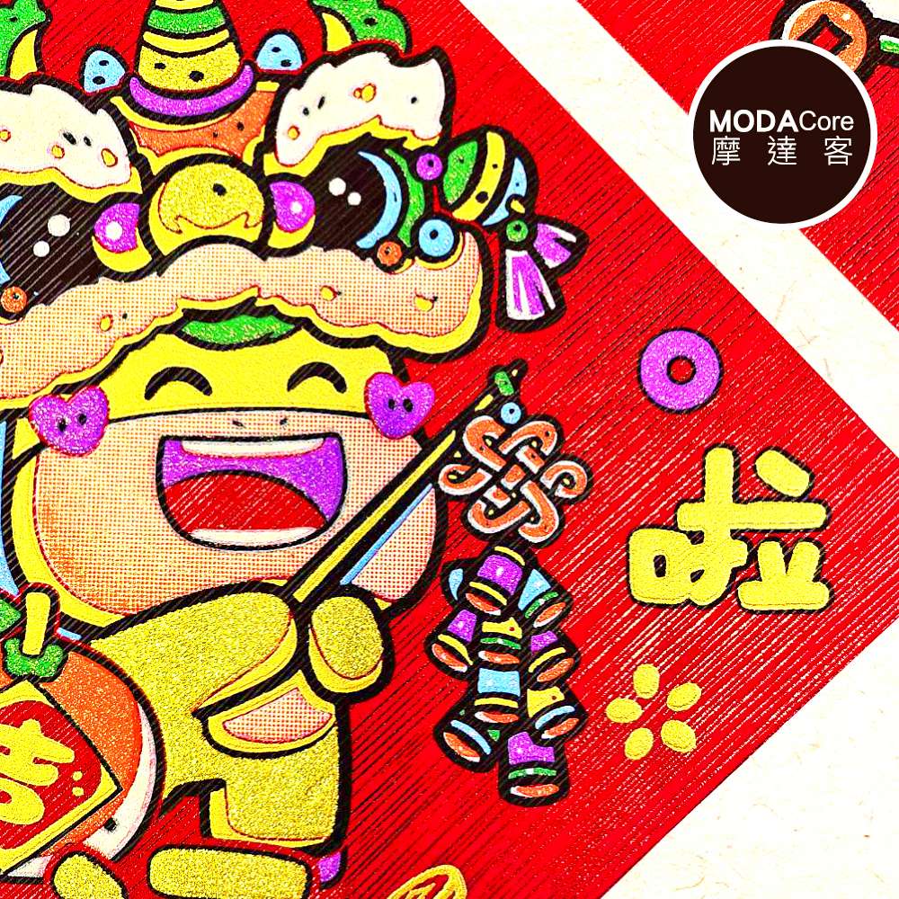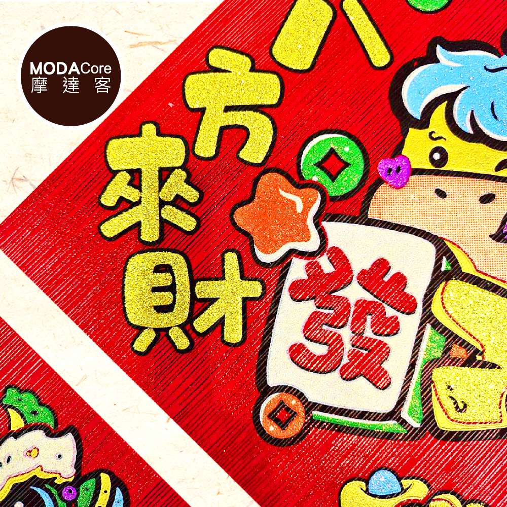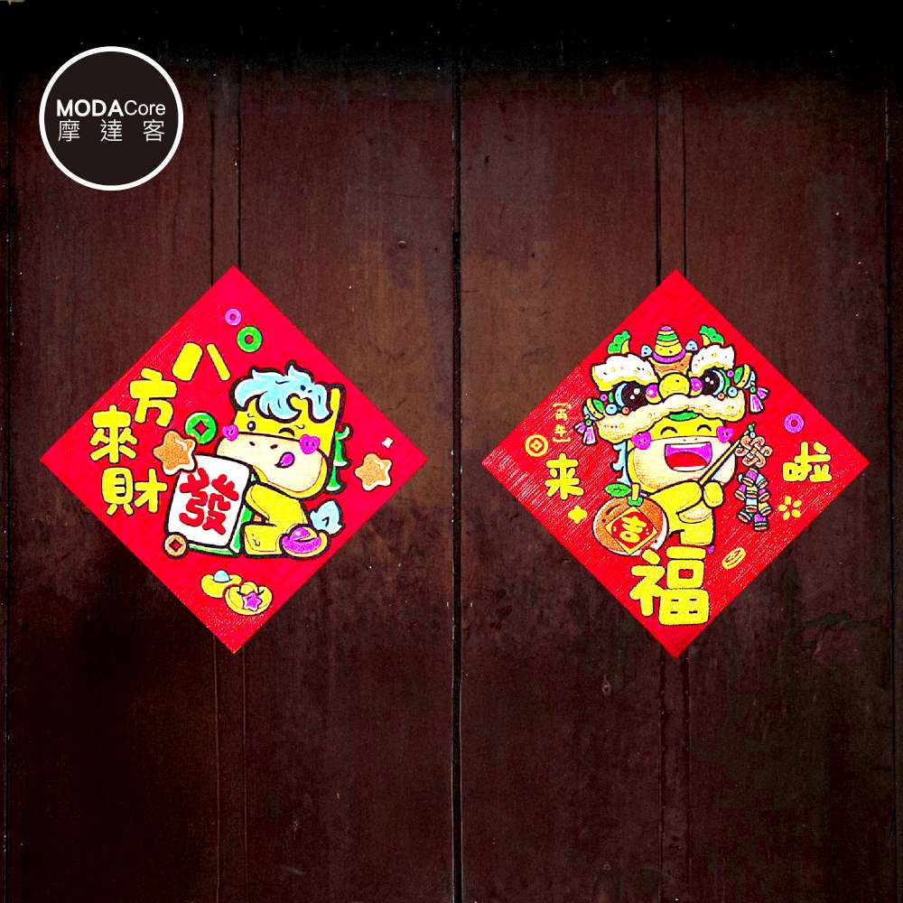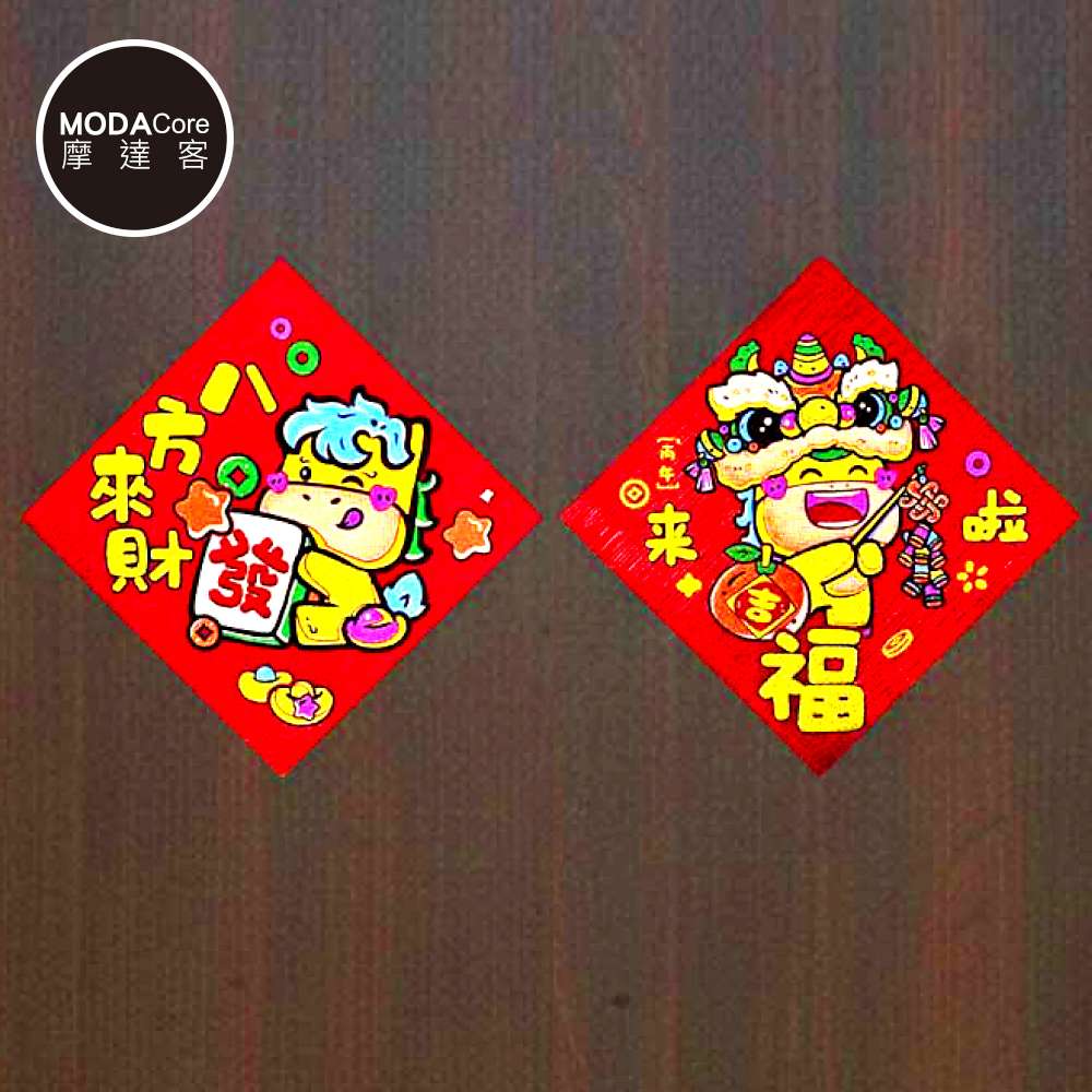 摩達客◉春節開運招財◉創意亮彩Q版八方來財來福啦斗方春聯兩片組