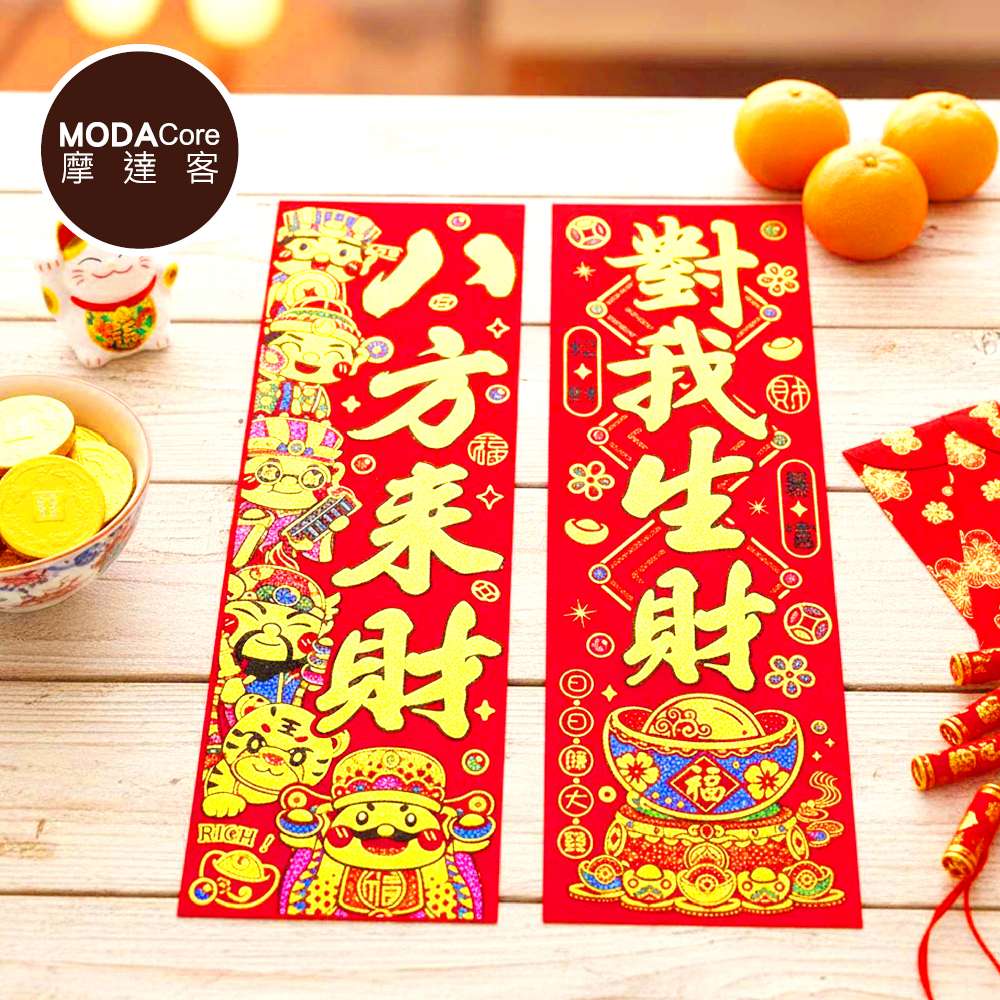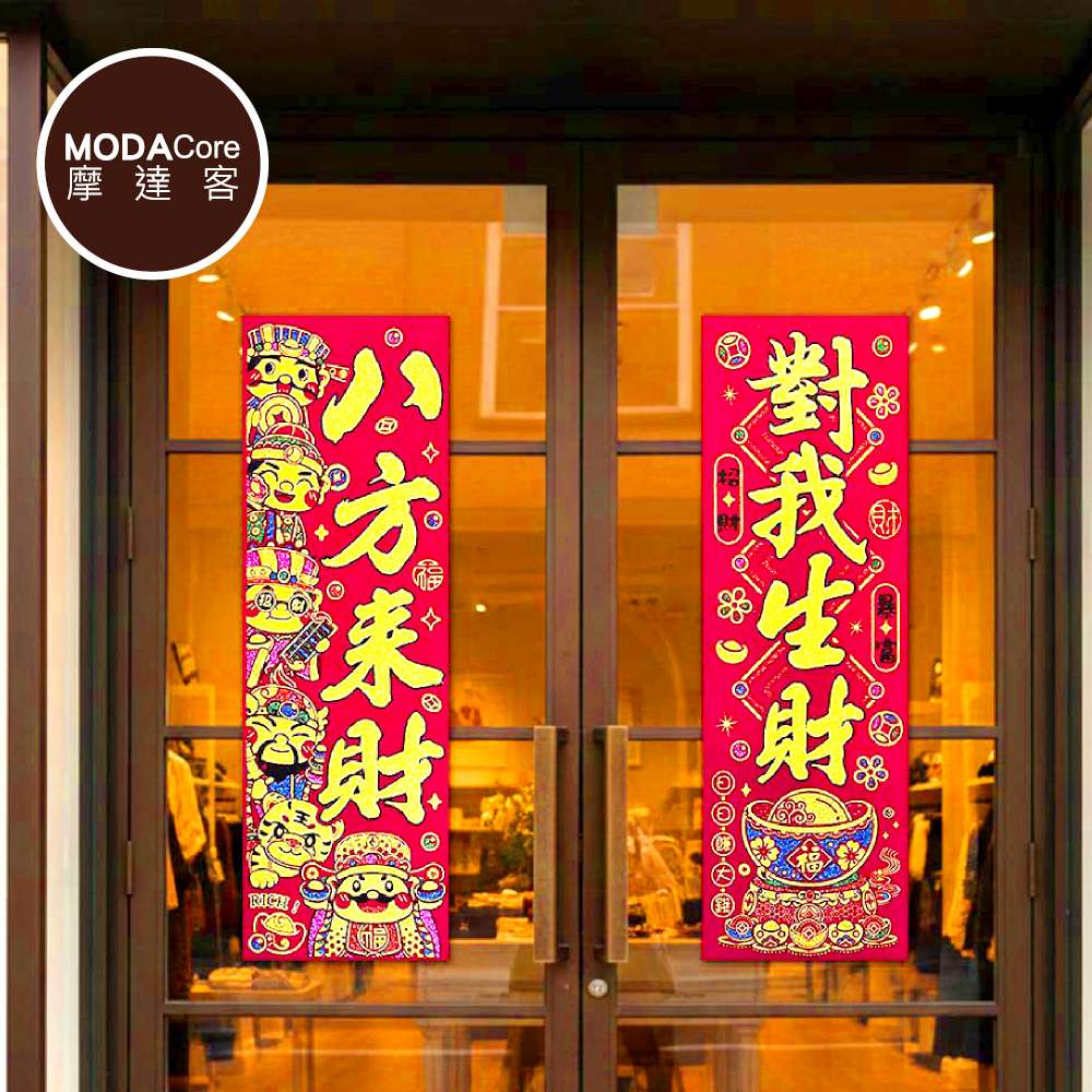 摩達客◉春節開運招財◉Q版財神爺八方來財對我生財絨布揮春門聯對聯春聯兩片組