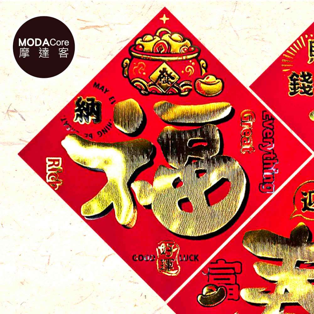 摩達客◉春節開運招財◉質感燙金仿絨招財進寶春福斗方3片組春聯牆貼