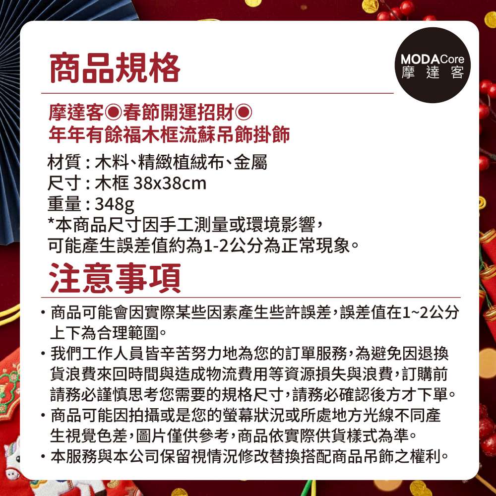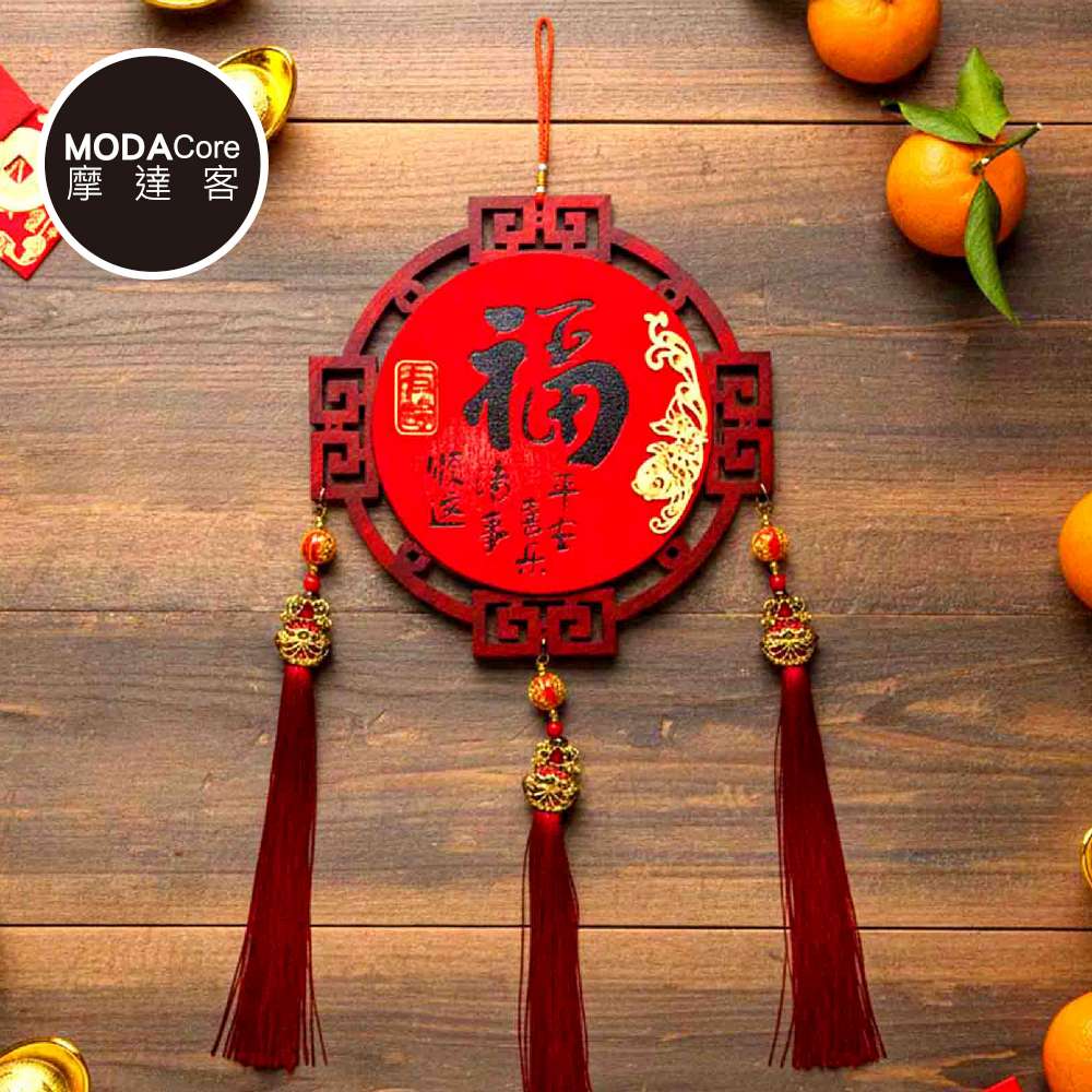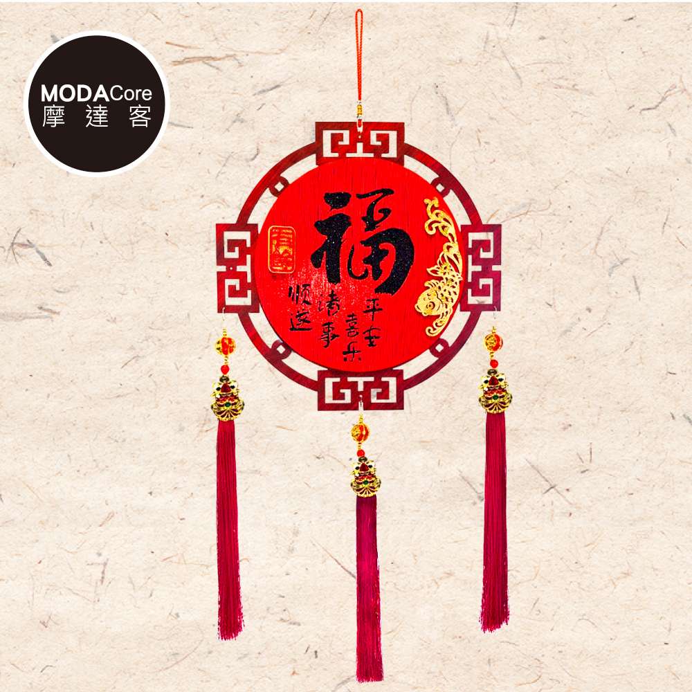 摩達客◉春節開運招財◉年年有餘福木框流蘇吊飾掛飾