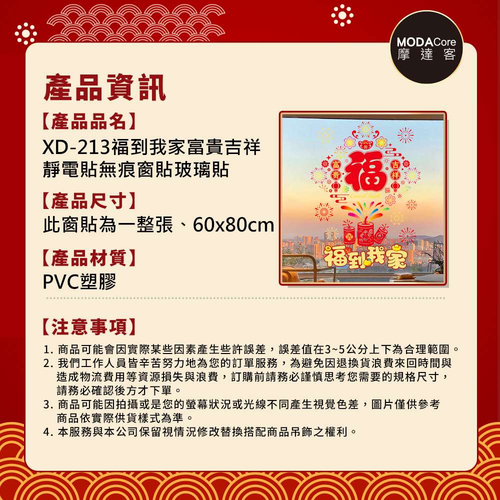 摩達客◉春節開運招財◉XD213福到我家富貴吉祥靜電貼無痕窗貼玻璃貼