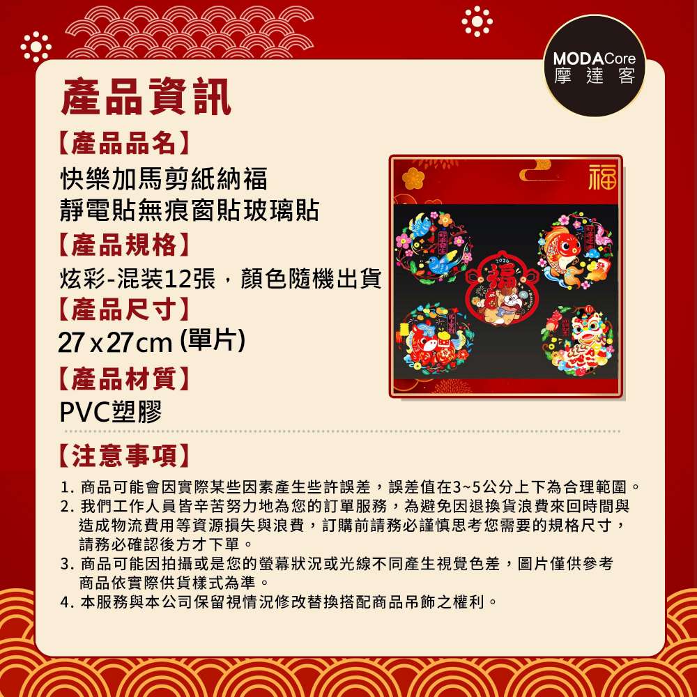 摩達客◉春節開運招財◉630快樂加馬剪紙納福靜電貼無痕窗貼玻璃貼