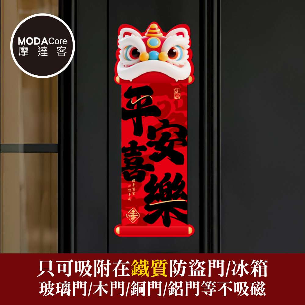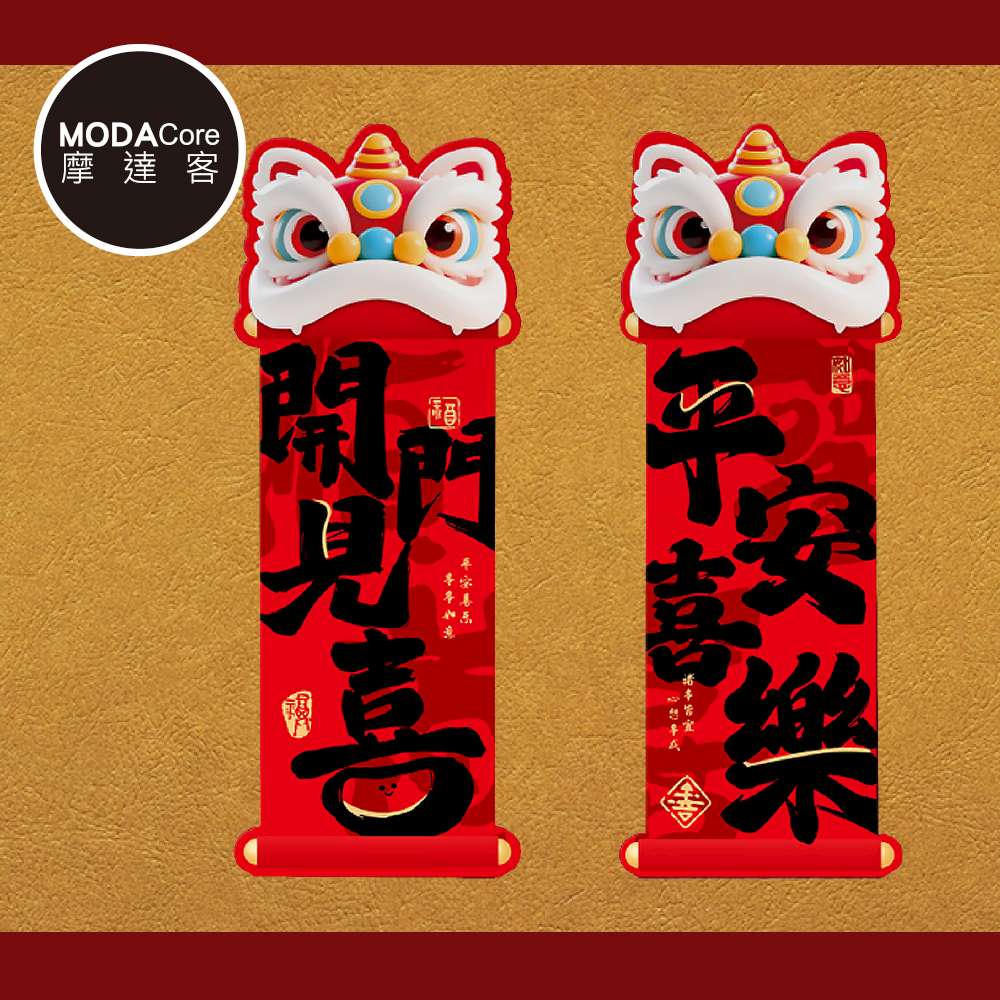 摩達客◉春節開運招財◉平安喜樂開門見喜醒獅磁吸對聯春聯2入組