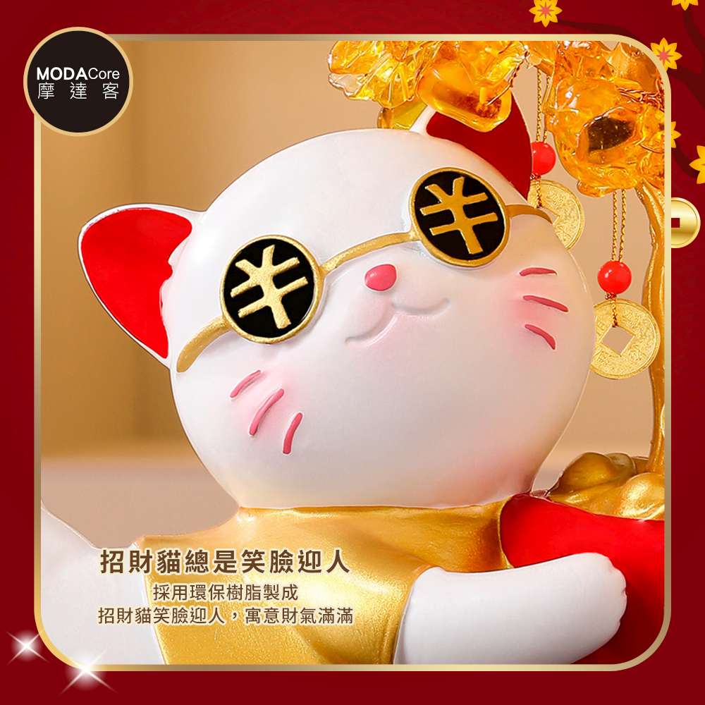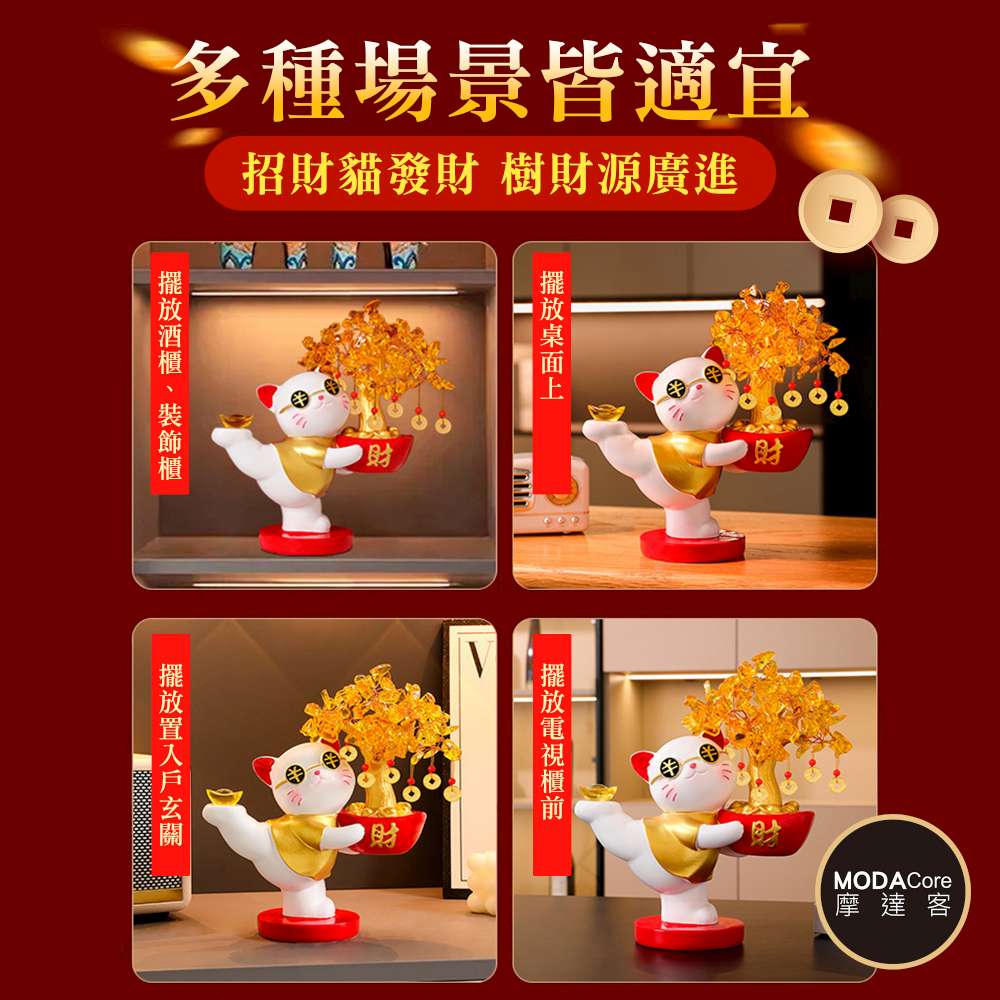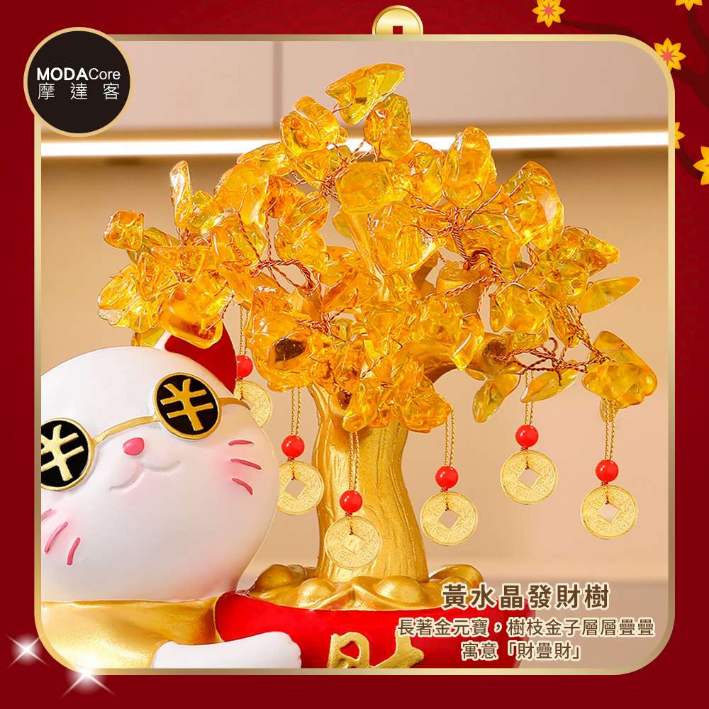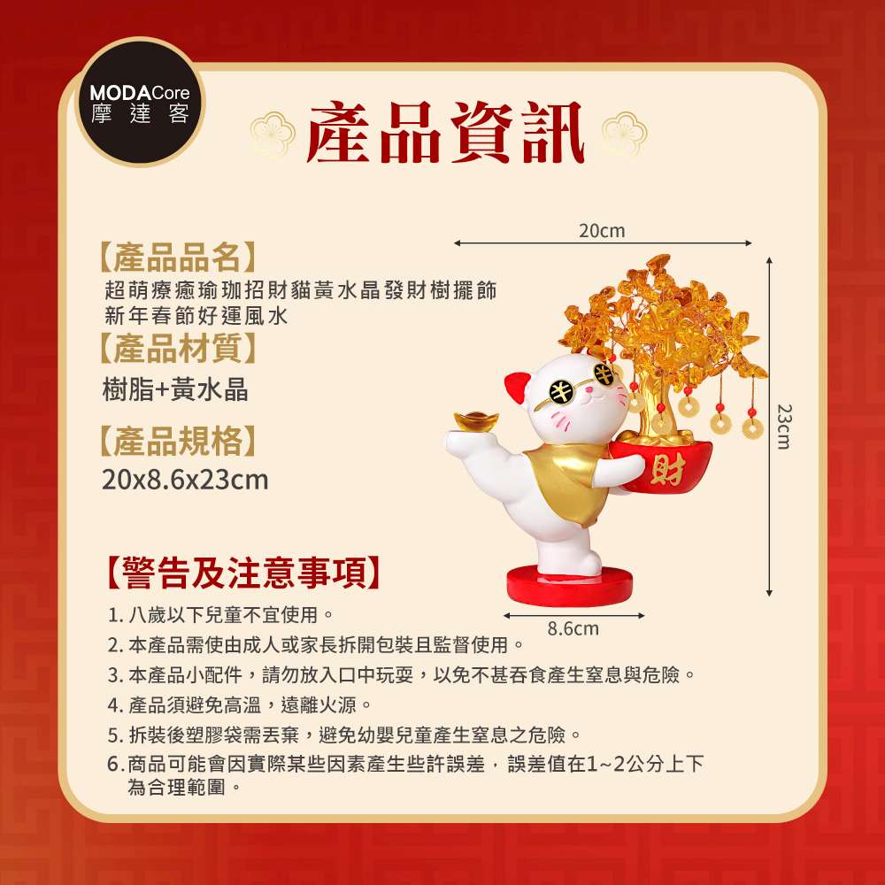 摩達客◉開運招財◉超萌療癒瑜珈招財貓黃水晶發財樹擺飾 新年春節好運風水