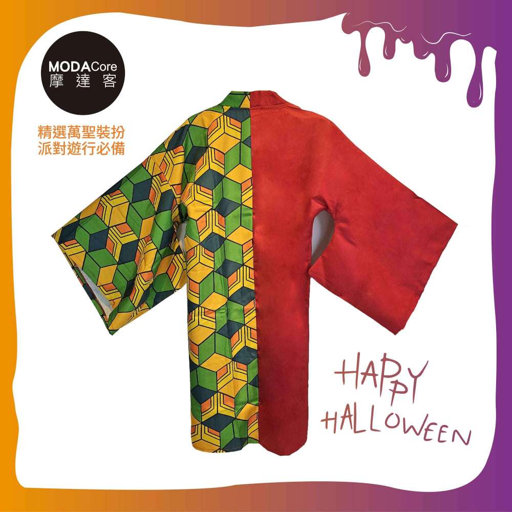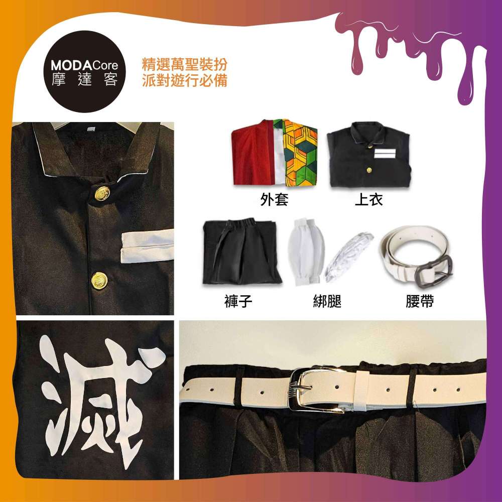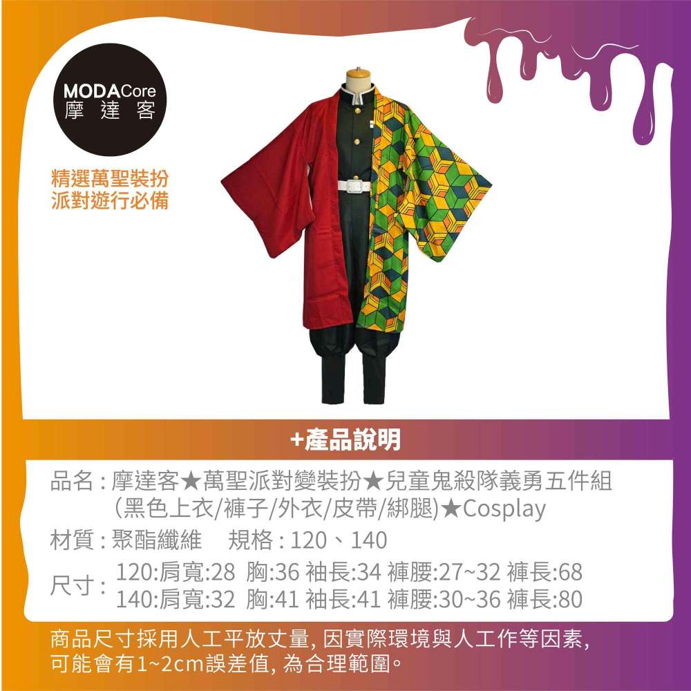 摩達客★萬聖派對變裝扮★兒童鬼殺隊義勇五件組-120cm(上衣/褲子/外衣/皮帶/綁腿)★Cosplay