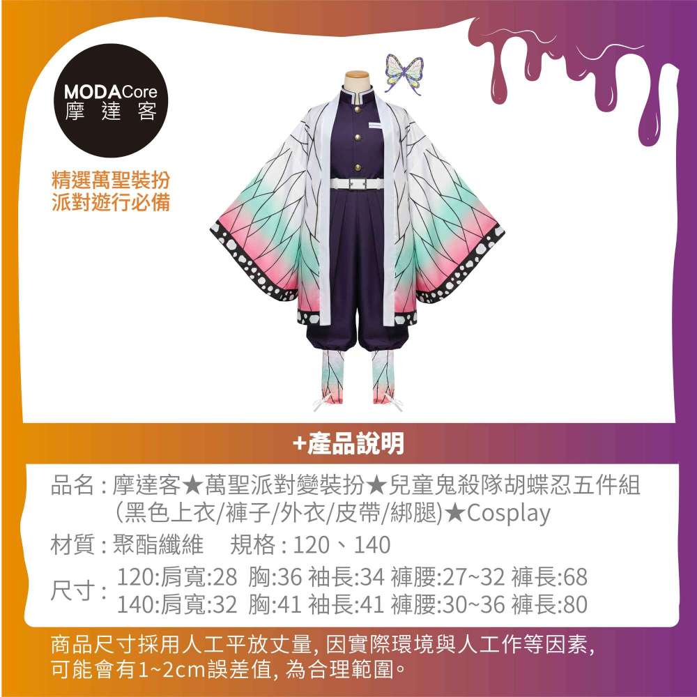 摩達客★萬聖派對變裝扮★兒童鬼殺隊胡蝶忍五件組-120cm(上衣/褲子/外衣/皮帶/綁腿)★Cosplay