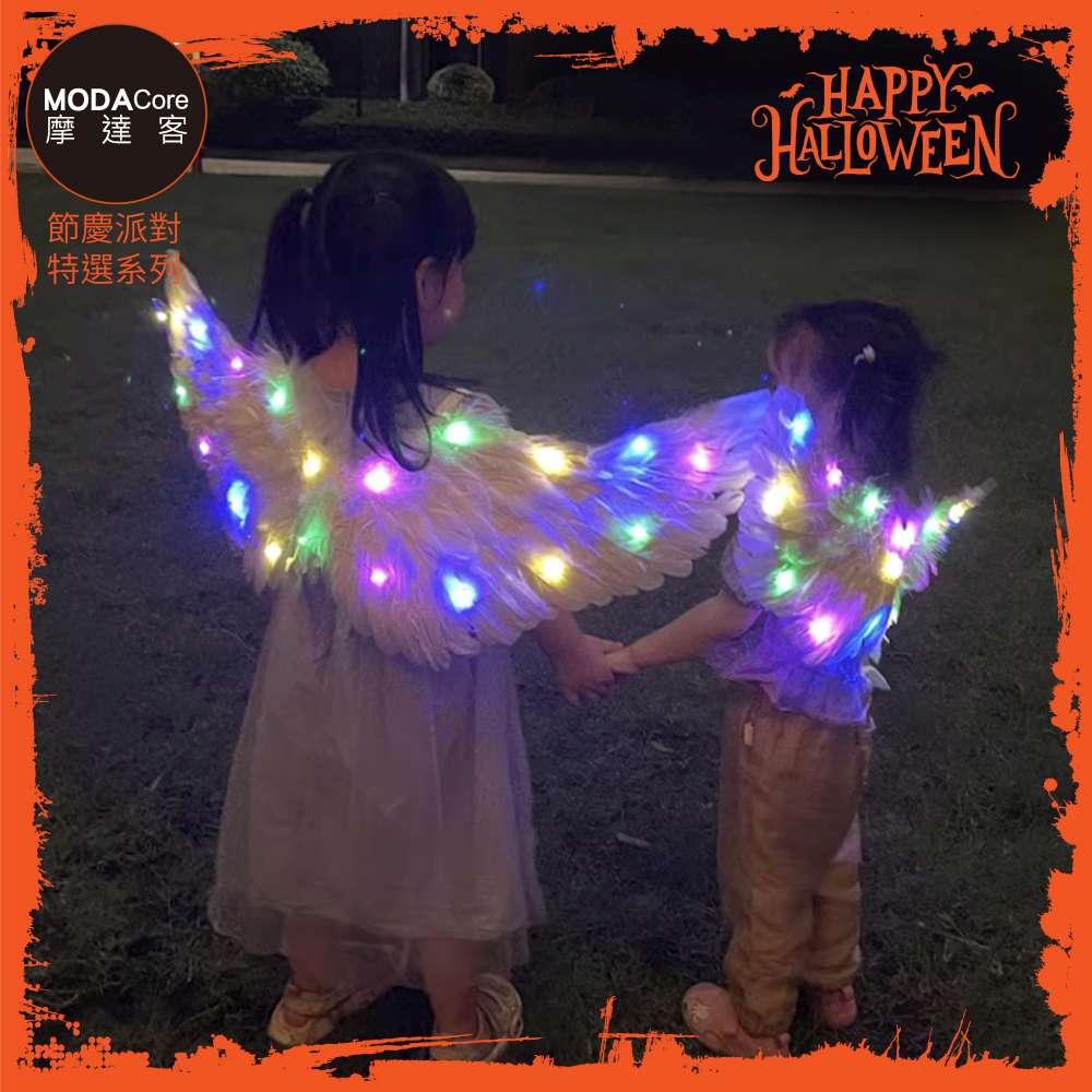 摩達客★萬聖派對變裝扮★LED發光白色蕾絲小仙女翅膀★Cosplay