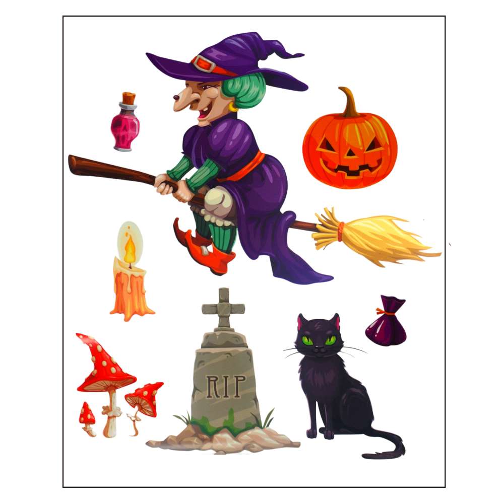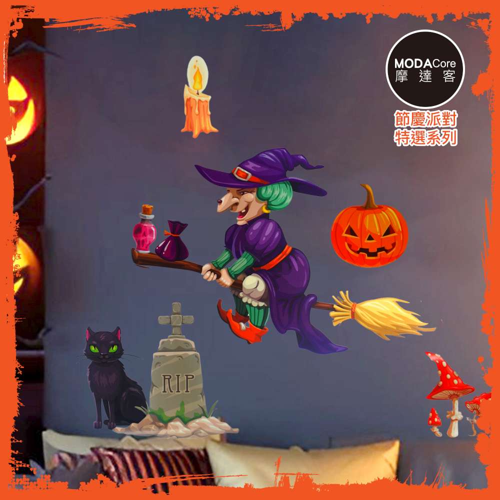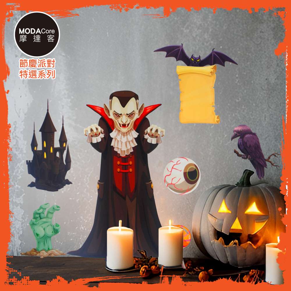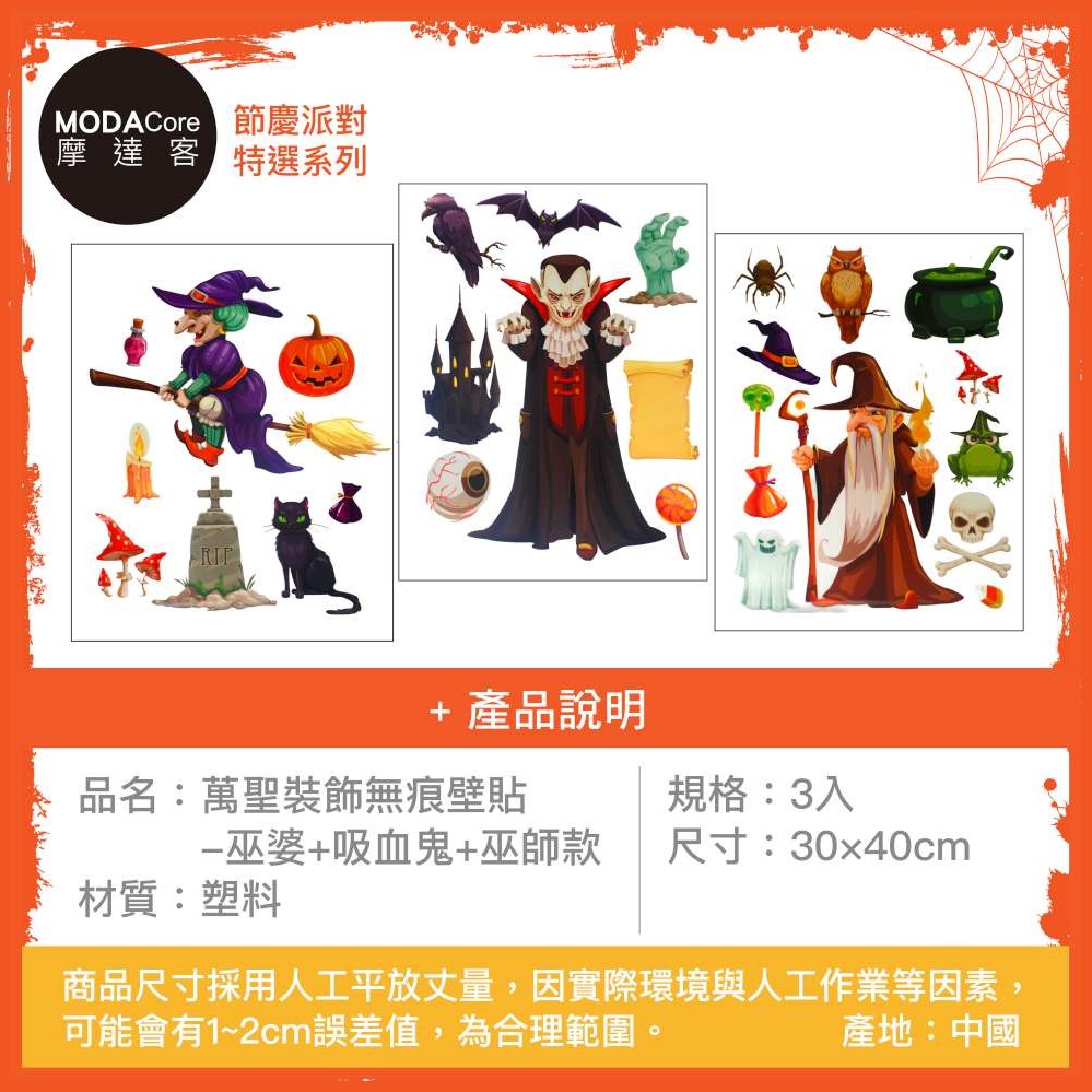 摩達客★萬聖節派對佈置裝飾★萬聖裝飾無痕壁貼-巫婆+吸血鬼+巫師款