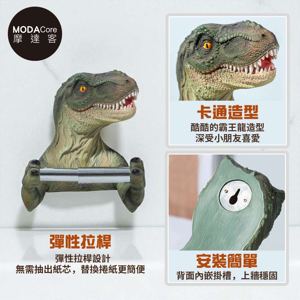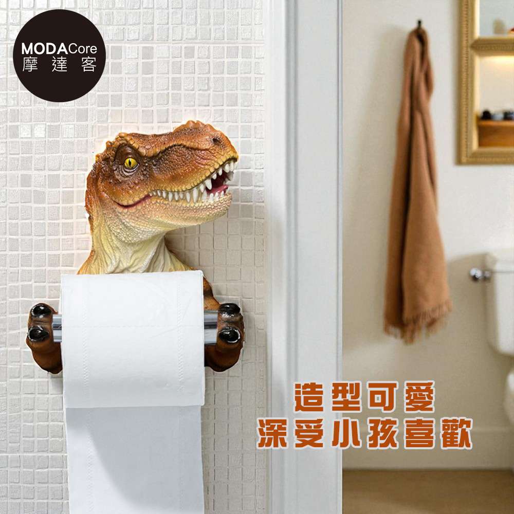 摩達客◉質感設計◉史前霸主暴龍擺飾創意喜感恐龍造型衛生紙架