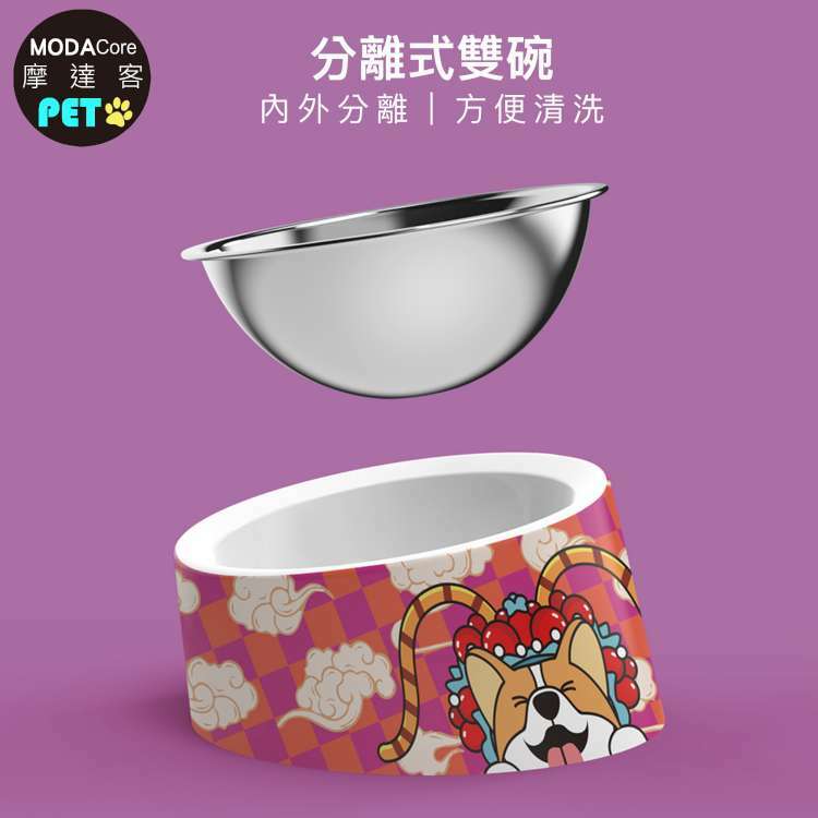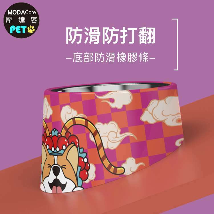 【摩達客寵物系列】超萌國劇柯基犬圖案護頸傾斜狗碗貓碗寵物碗/L號