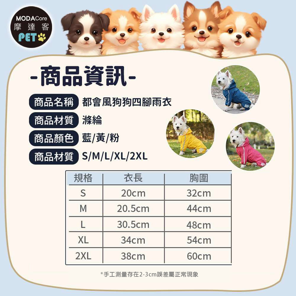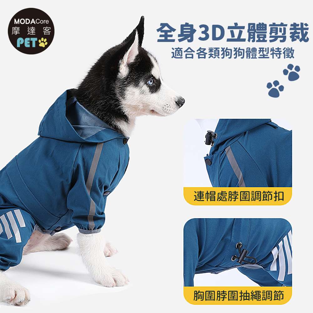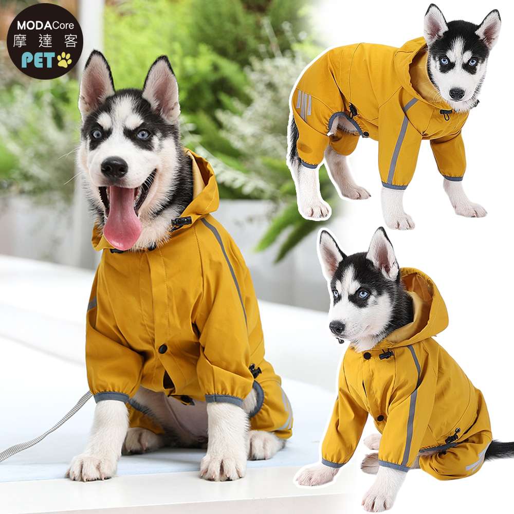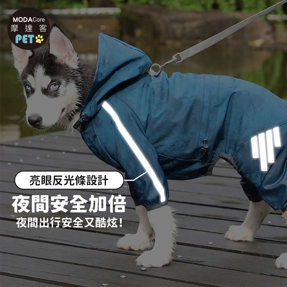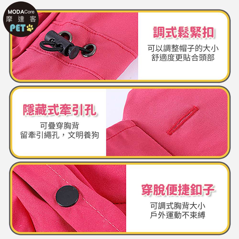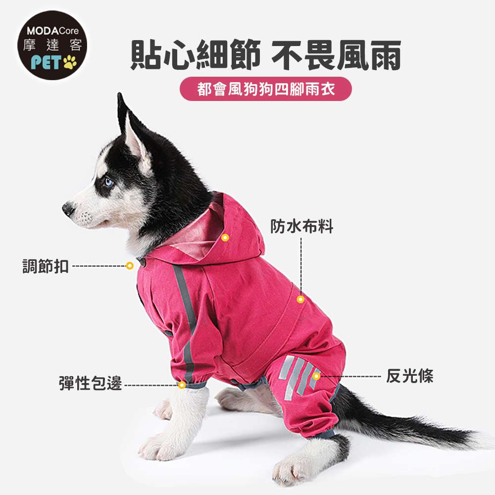 摩達客寵物-都會風狗狗全包連身四腳雨衣 粉紅色系 多尺寸可選 反光條 防水 雨天外出必備