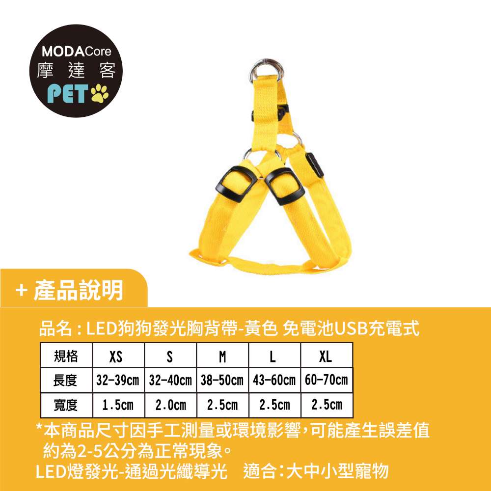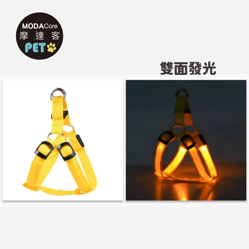 摩達客寵物-LED狗狗發光胸背帶 夜間遛狗 免電池USB充電式 兩色多尺寸 保護防撞防走失