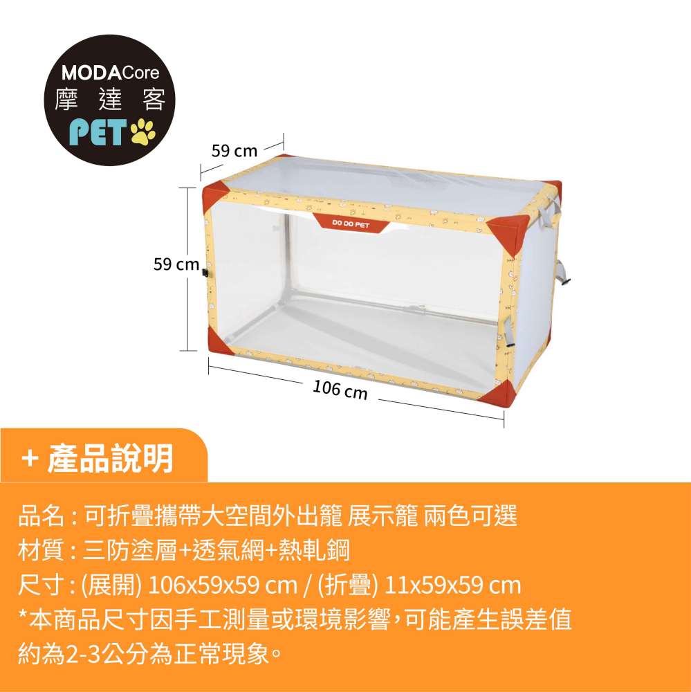 摩達客寵物-可折疊攜帶大空間外出籠_展示籠_黃色款__貓比賽籠_大透明視窗_輕巧露營車載貓狗特寵臨時窩適用