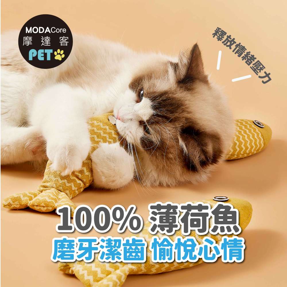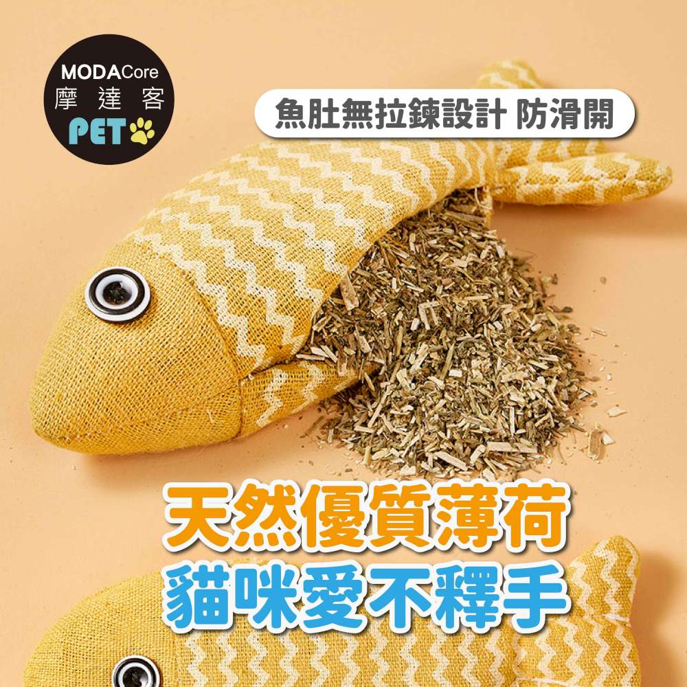 摩達客寵物-貓咪紓壓麻布貓薄荷黃色魚型玩具布偶-黃色+灰色兩入組-大號30cm逗貓陪伴自嗨解悶