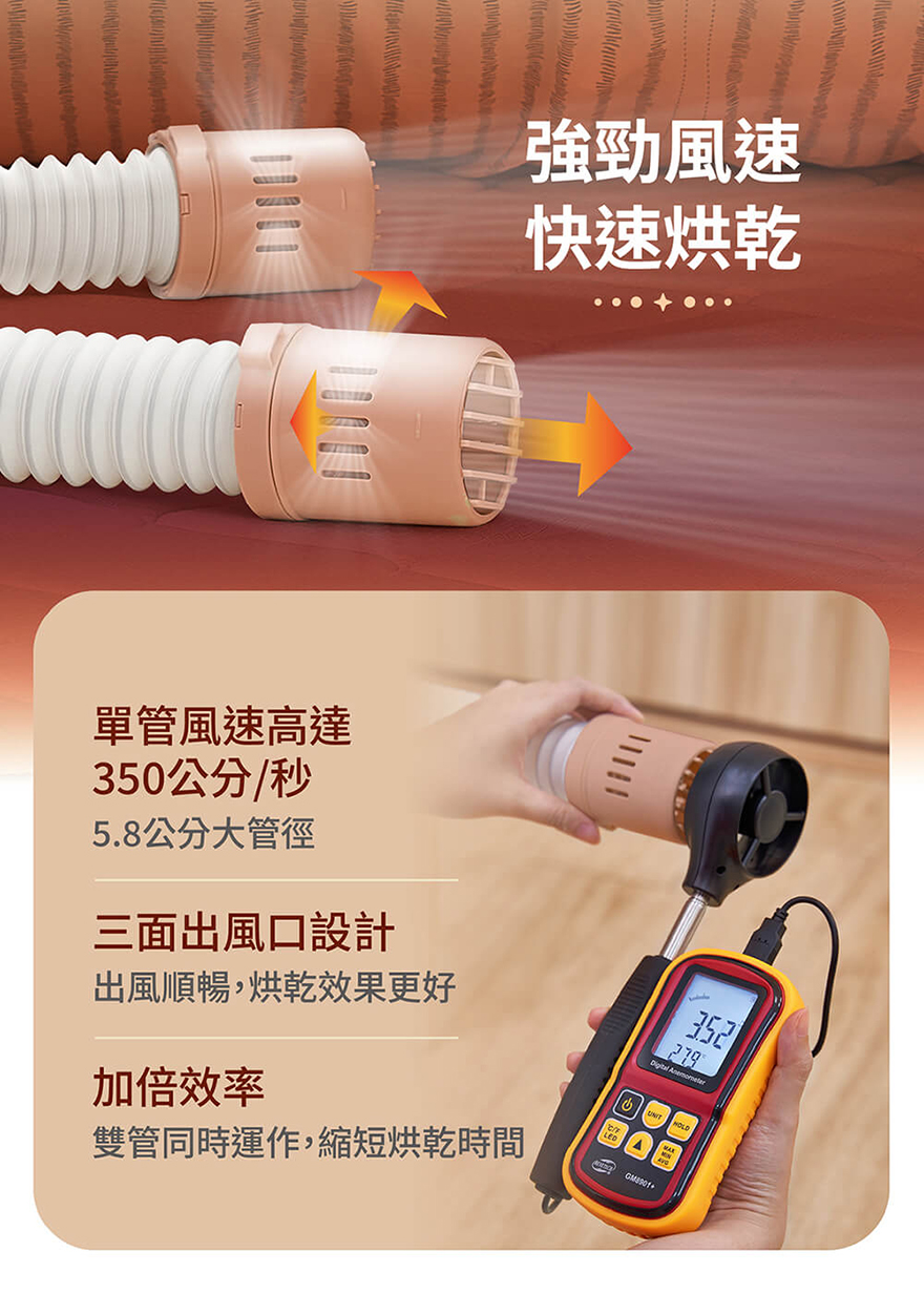 產品尺寸:長22cm(含風管25cm)X寬11cm(含風管17cm)X高25cm(含風管31.5cm)