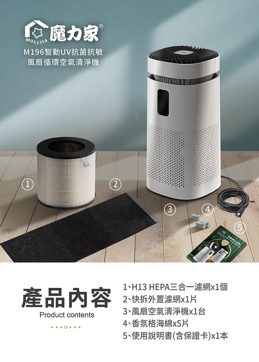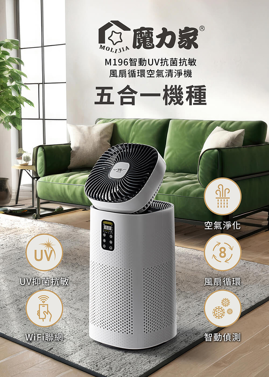 產品名稱:【MOLIJIA 魔力家】M196 智動UV抗菌抗敏風扇循環空氣清淨機
