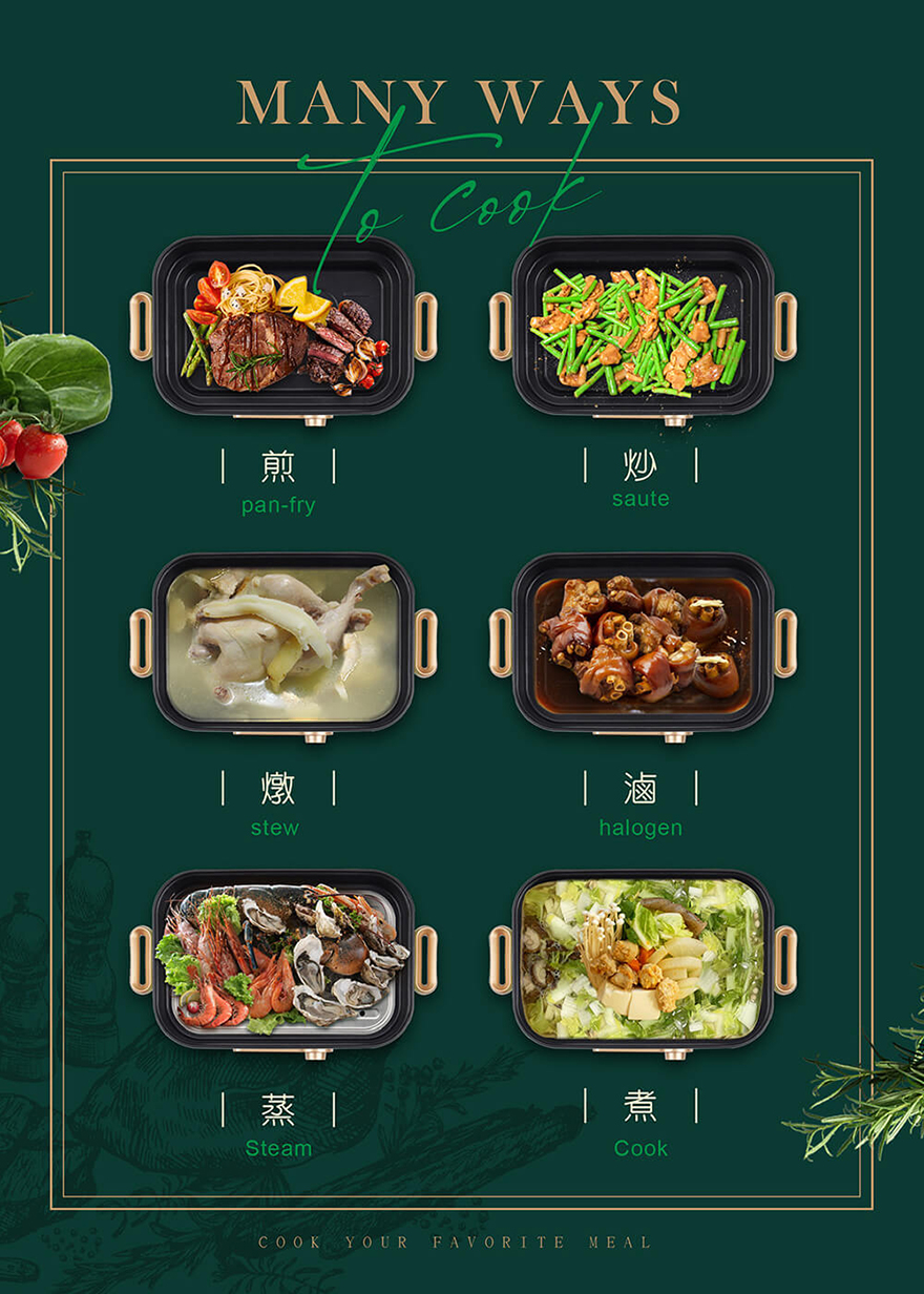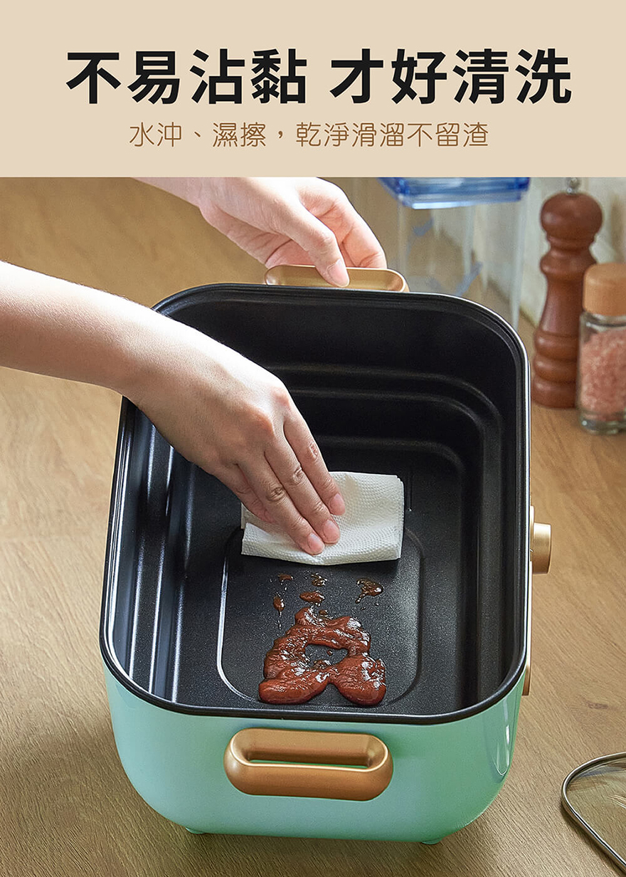 內容物:不沾方鍋x1+強化玻璃蓋x1+分離式電源線x1+不鏽鋼蒸盤x1+說明書x1