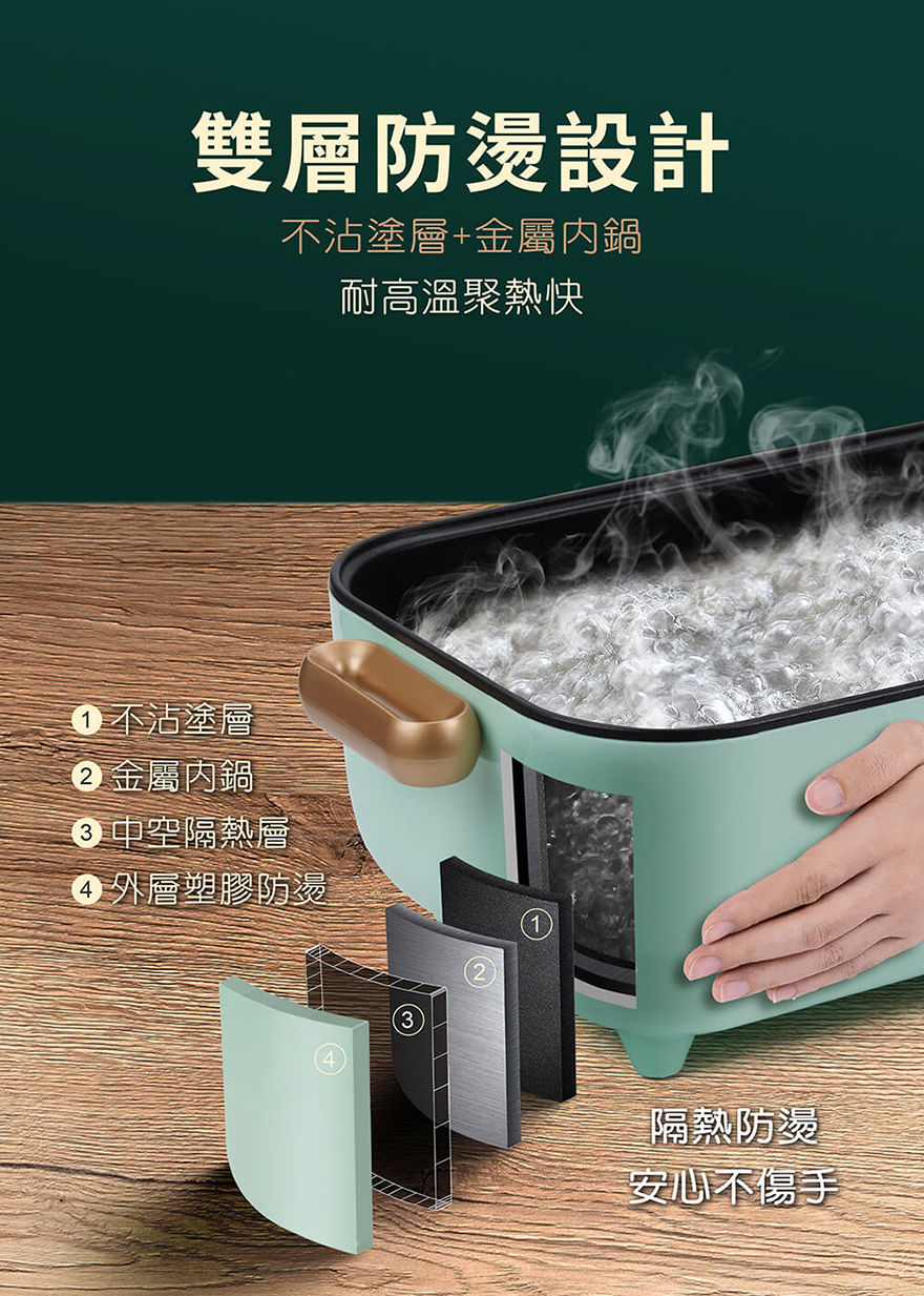 【MOLIJIA 魔力家】5.3L-M24 多功能美食料理不沾快煮電火電湯蒸鮮鍋+不鏽鋼蒸片-馬卡龍綠