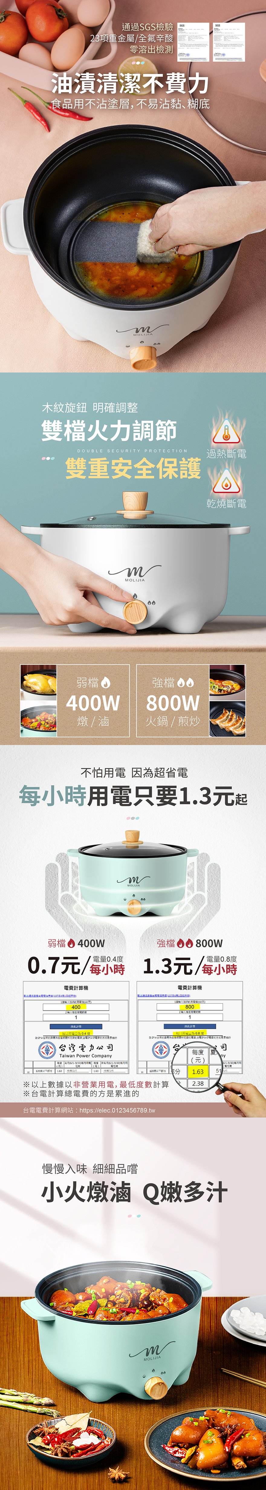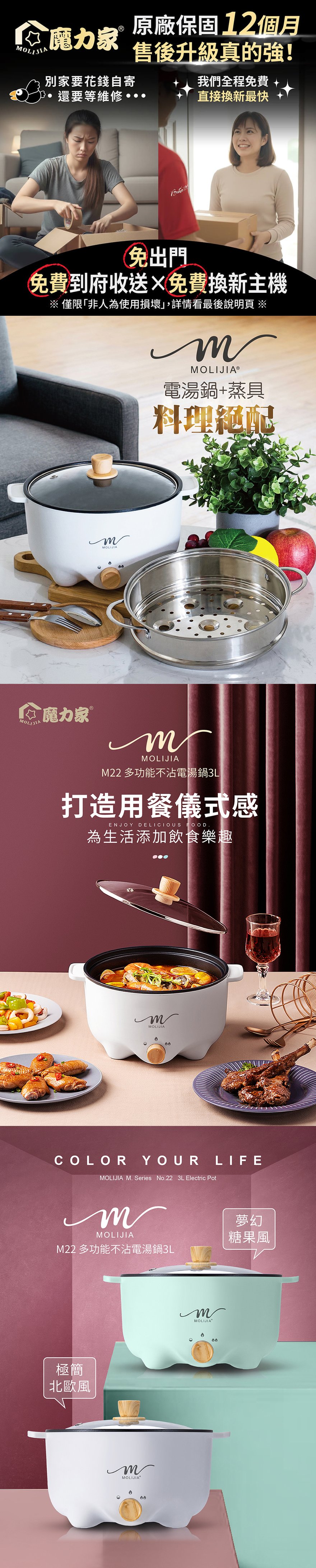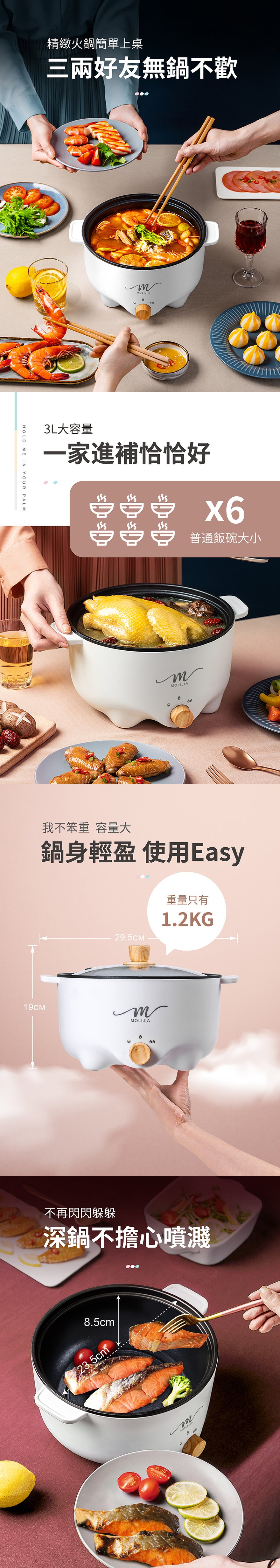 產品名稱:【MOLIJIA 魔力家】M22多功能不沾電湯鍋3L