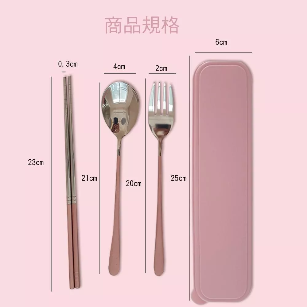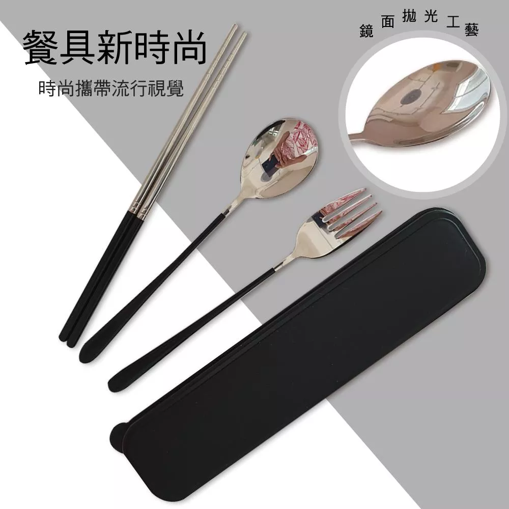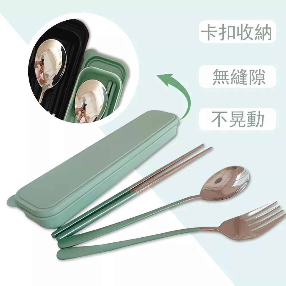 三件套組: 筷子+湯匙+叉子+附收納盒 新型卡扣設計,零晃動收納