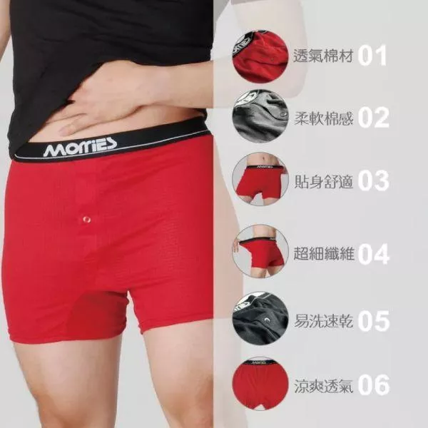 【MORRIES】吸濕排汗速乾男平口內褲MR767-紅M
