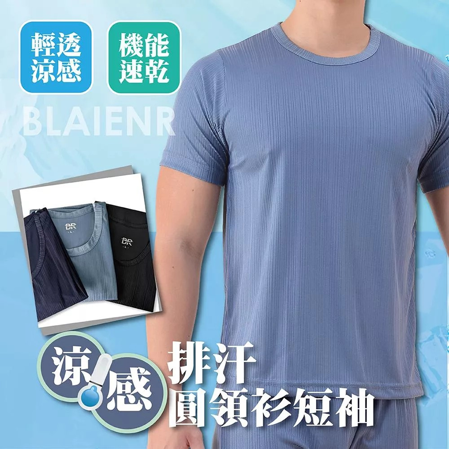 BR涼感速乾男圓領短袖運動上衣BR8803台灣製
