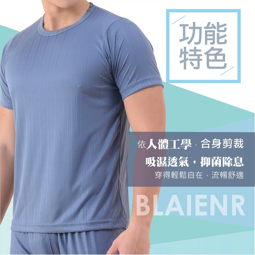BR涼感速乾男圓領短袖運動上衣-灰藍L