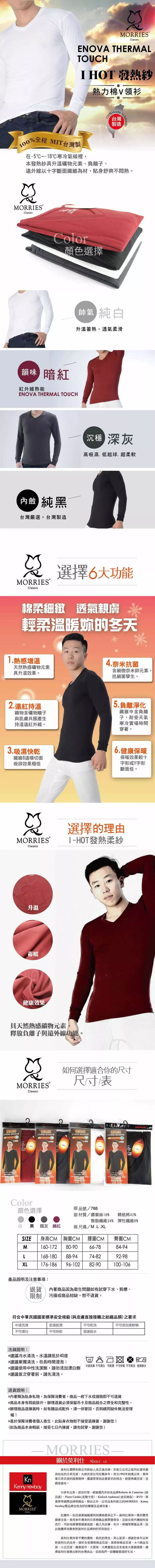 【MORRIES】遠紅外線發熱紗透氣精梳棉V領男保暖衣MR788