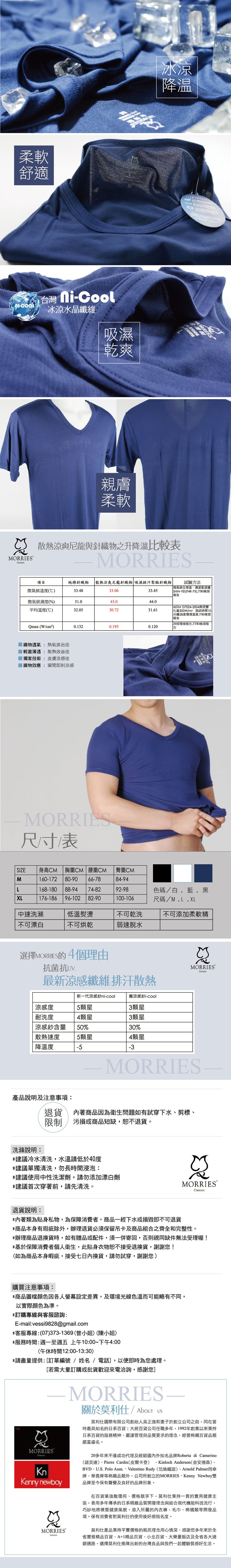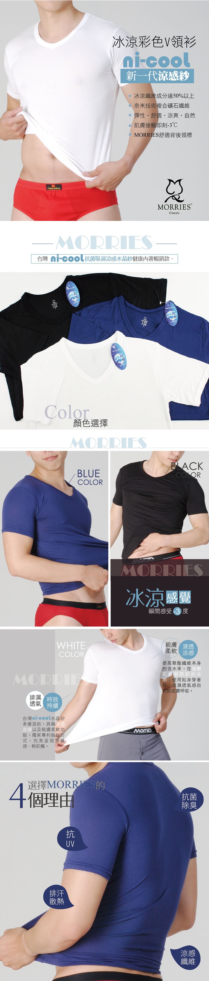 【MORRIES】涼感肌ni-cool男V領MR727-白M