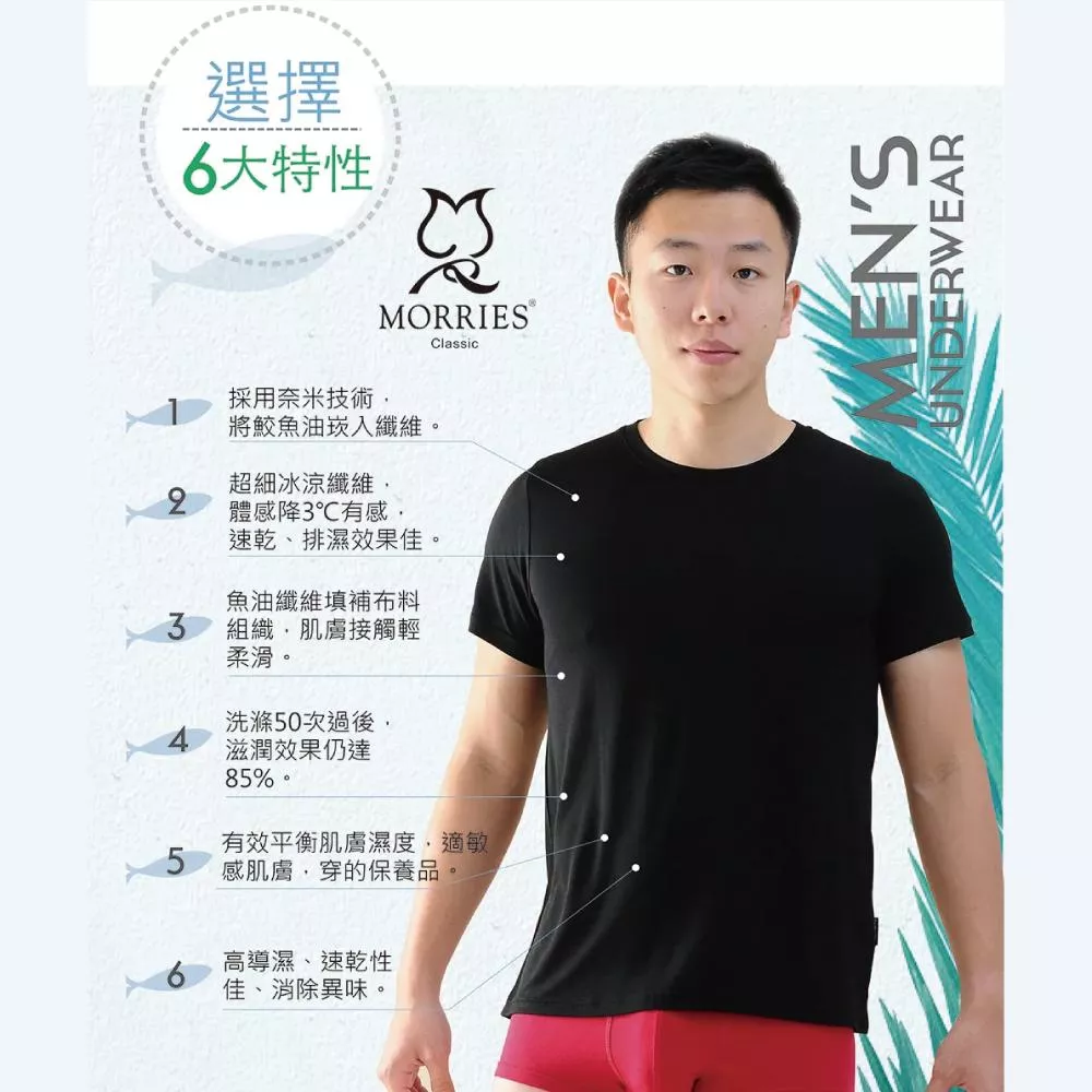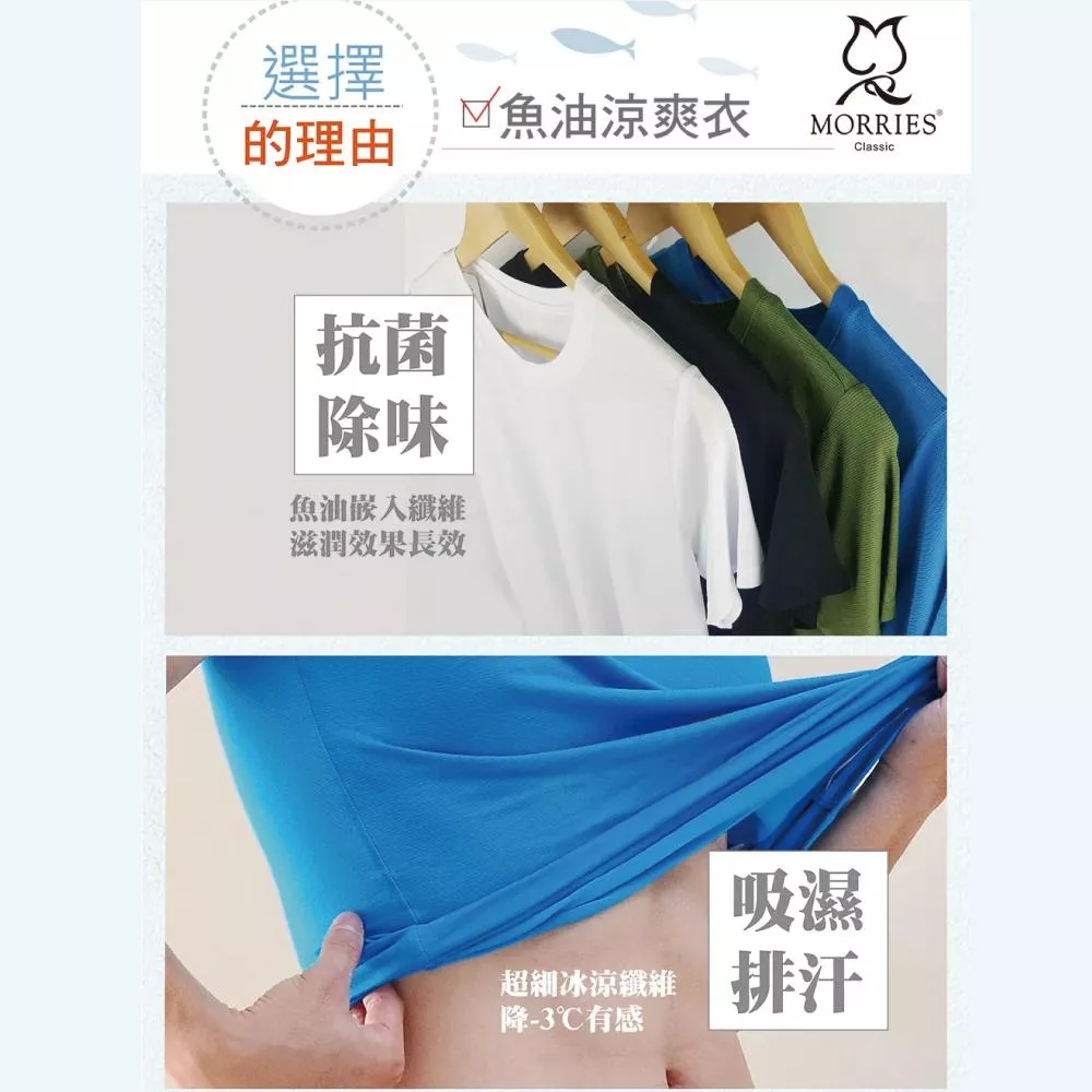 【MORRIES】涼感肌ni-cool男V領MR727-藍M