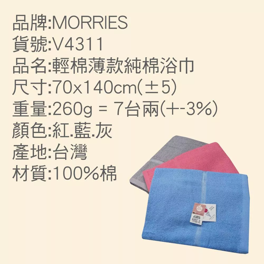 【MORRIES莫利仕】輕棉薄款純棉浴巾V4311台灣MIT優品