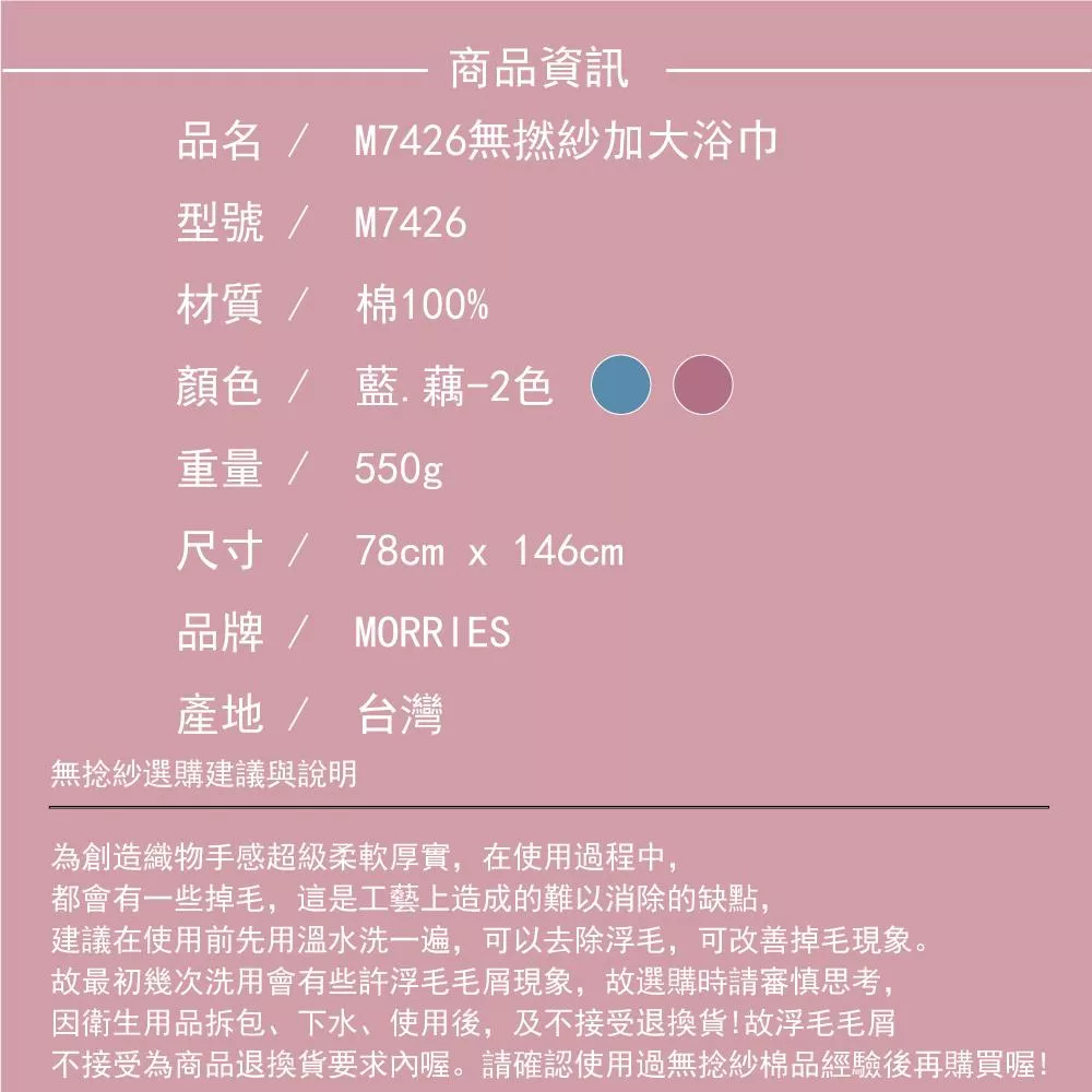 【MORRIES莫利仕】純棉無捻紗加大浴巾M7426(品牌大廠.台灣製)