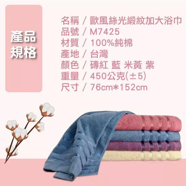 【MORRIES莫利仕】輕奢華純棉歐系色加大加長浴巾M7425-1