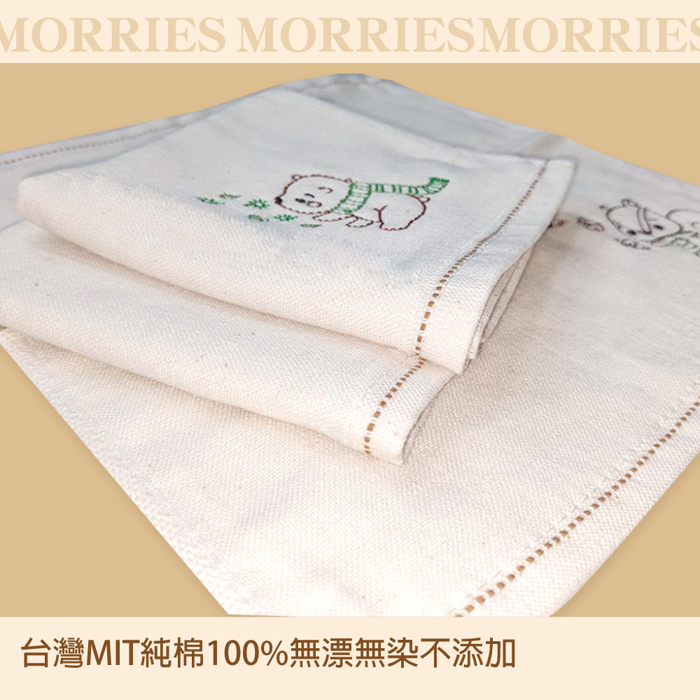 【MORRIES莫利仕】天然原棉無染童趣精繡童巾HP4141 買一送一