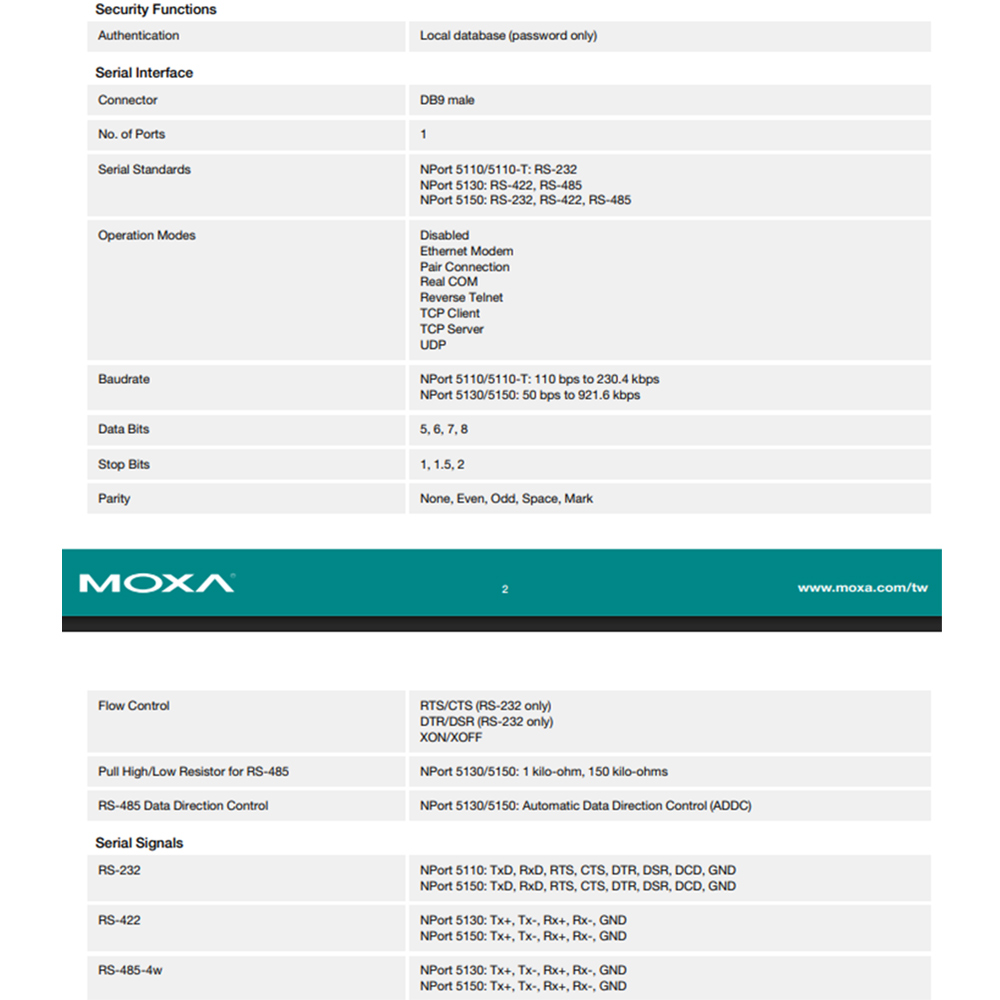 昌運監視器 MOXA NPort 5150 1埠RS-232/422/485串列設備伺服器