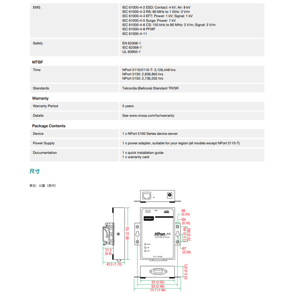 昌運監視器 MOXA NPort 5110 1埠RS-232串列設備伺服器