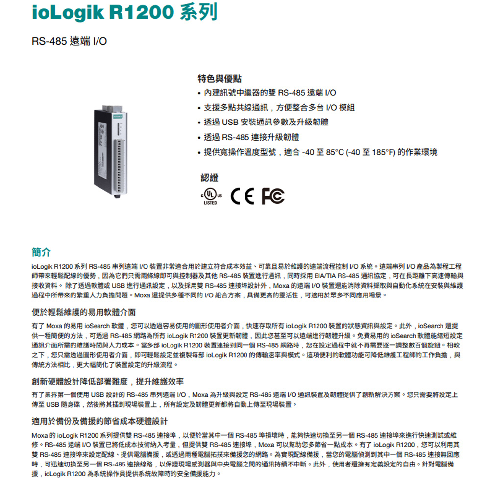 昌運監視器 MOXA ioLogik R1212 RS-485遠端I/O 8xDI 8xDIO