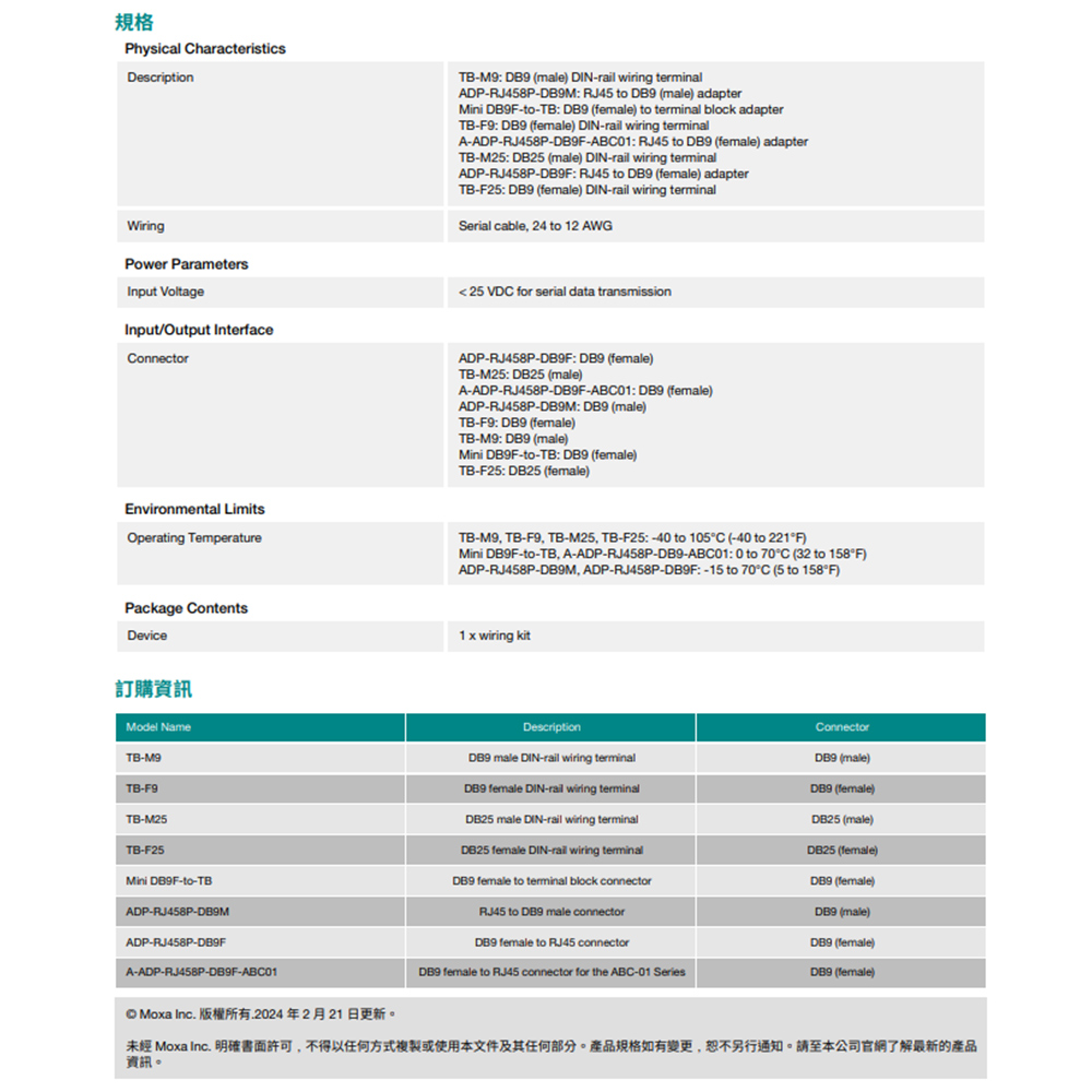 昌運監視器 MOXA Mini DB9F-to-TB DB9母頭至接線端子連接器